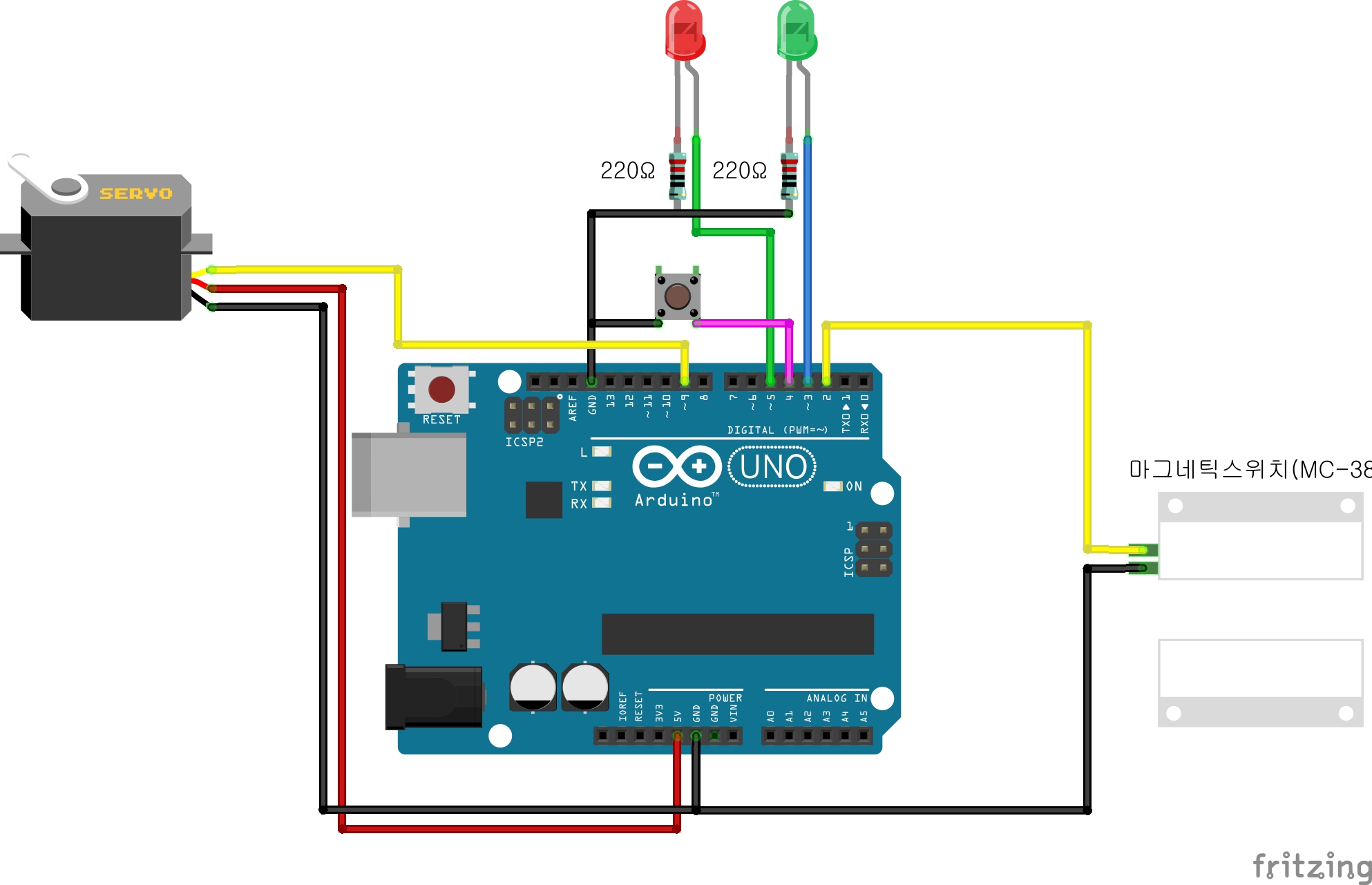 예제 20-4(LED/버튼/서보모터/마그네틱스위치)