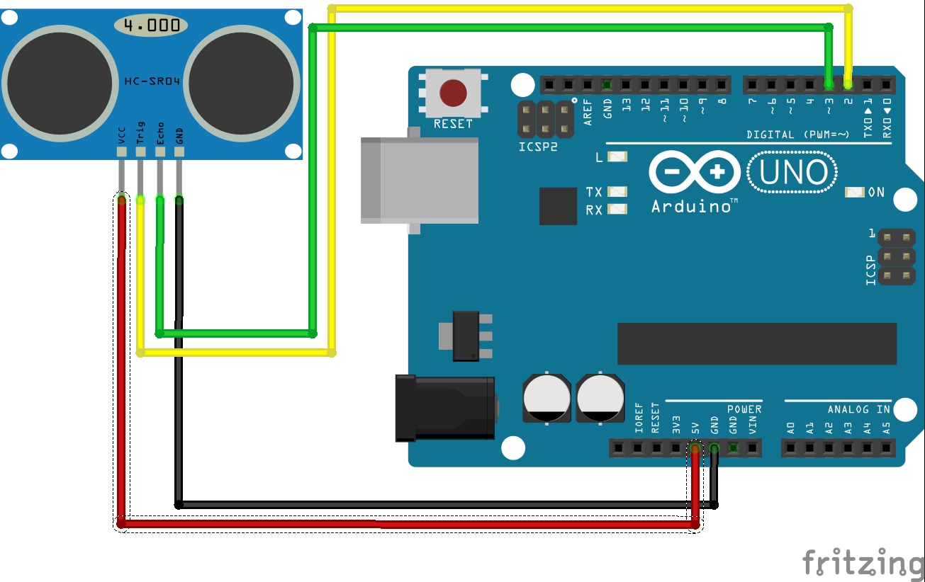 * 초음파 센서의 trig핀을 D2에 연결하고 echo핀을 D3에 연결해서