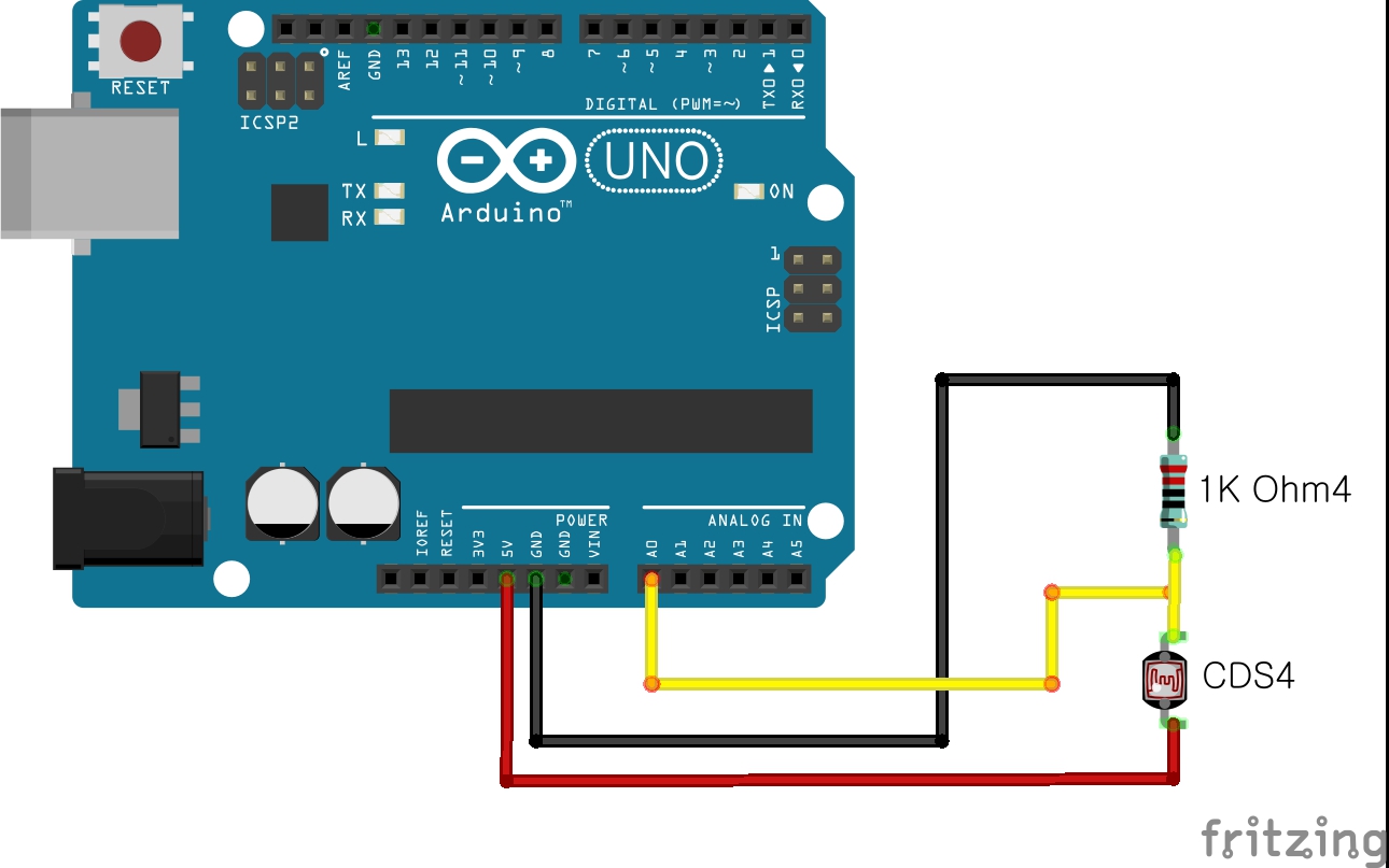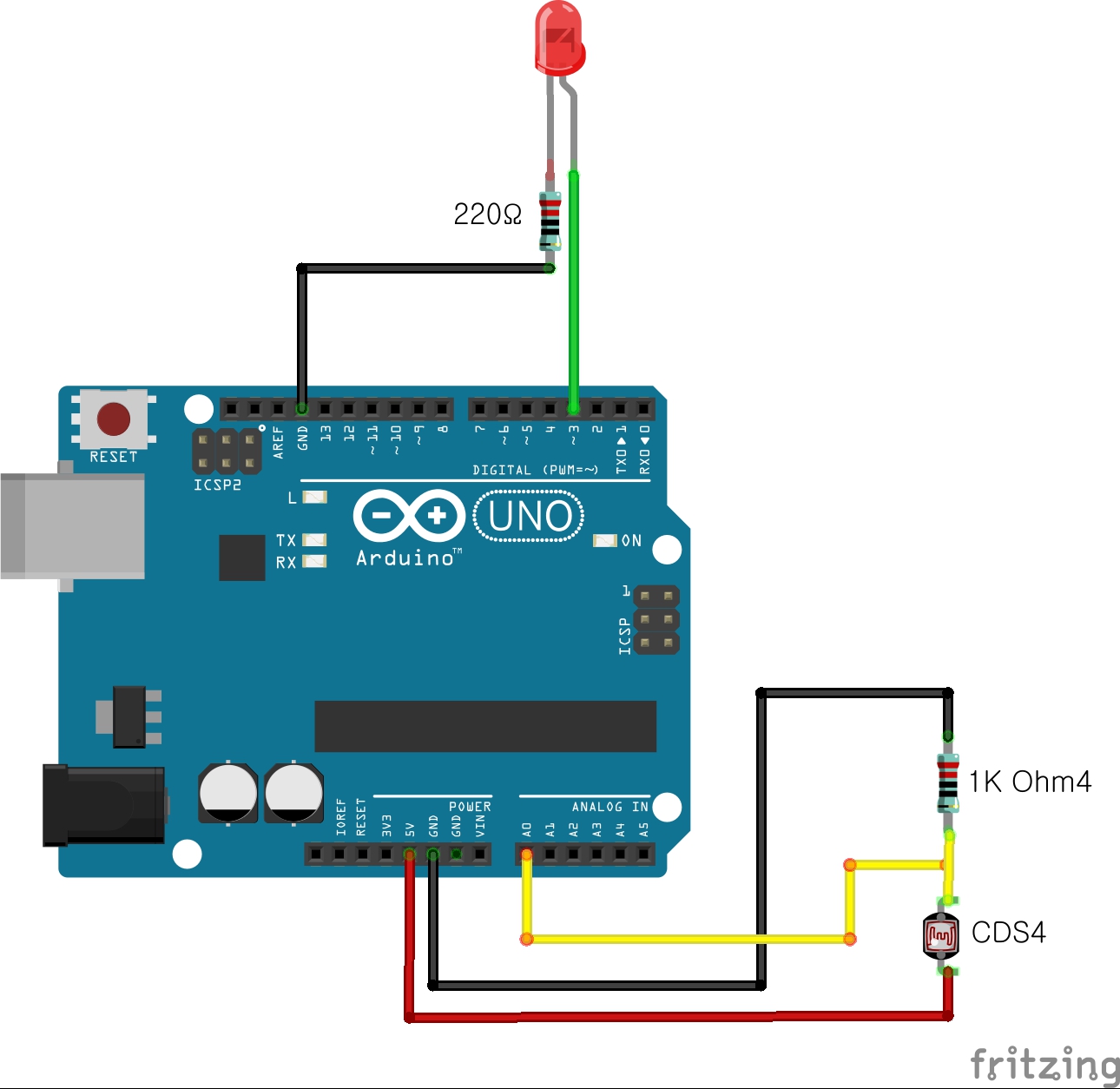 * (단 예제에서는 1k옴짜리 저항을 사용했다)