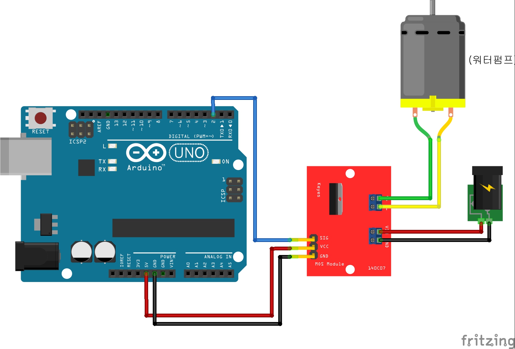 * 모스펫의 신호선을 D2에 연결한다음에