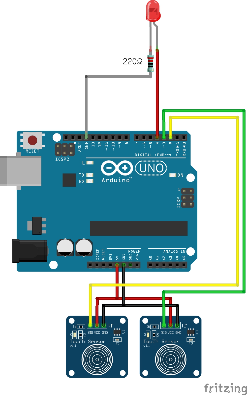 * 터치센서 2개는 각각 아래와 같이 연결했다.