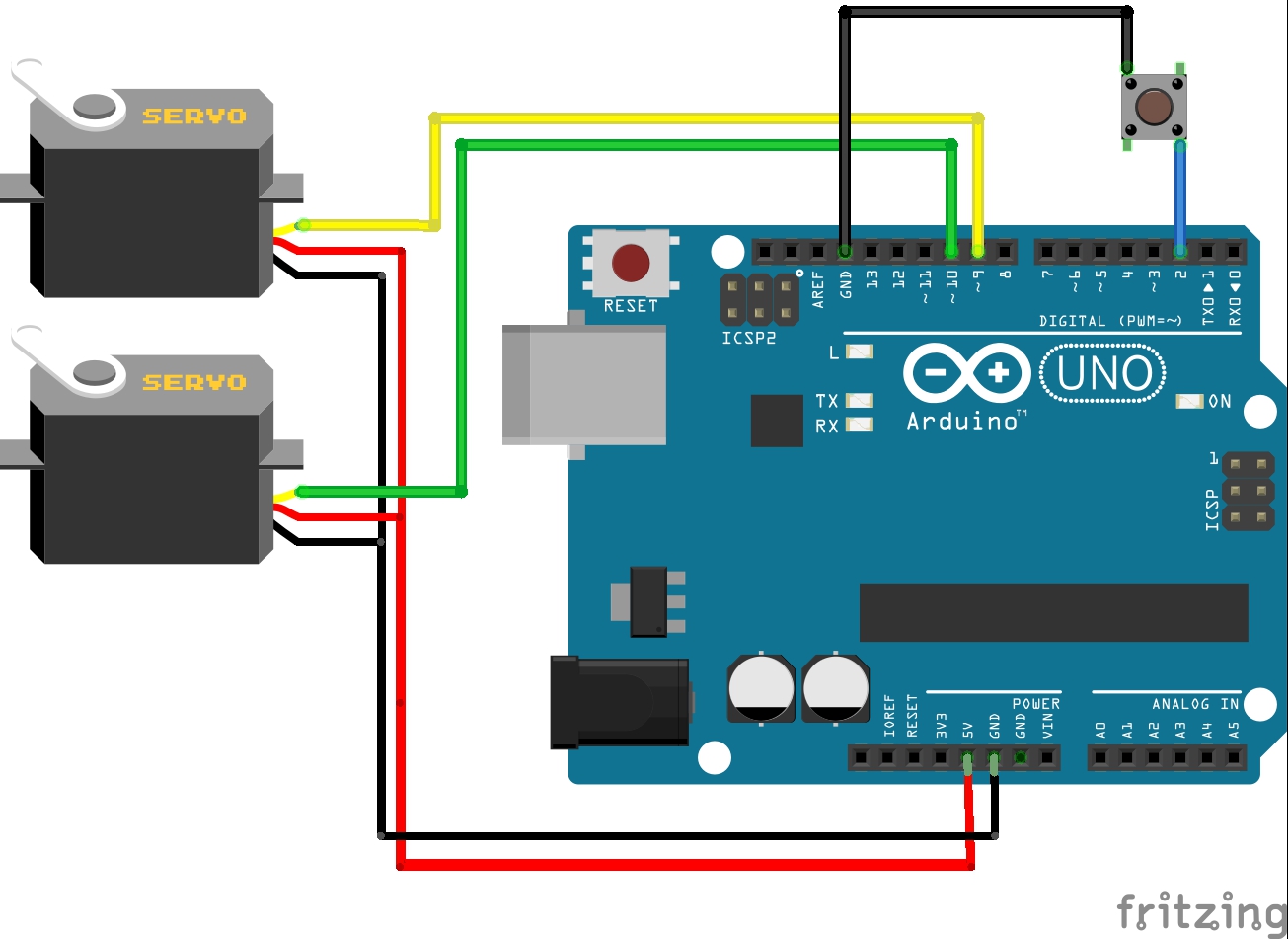 * 서보모터 1번은 디지털9에 연결하고 서보모터 2는 디지털 10에 연결했다.
