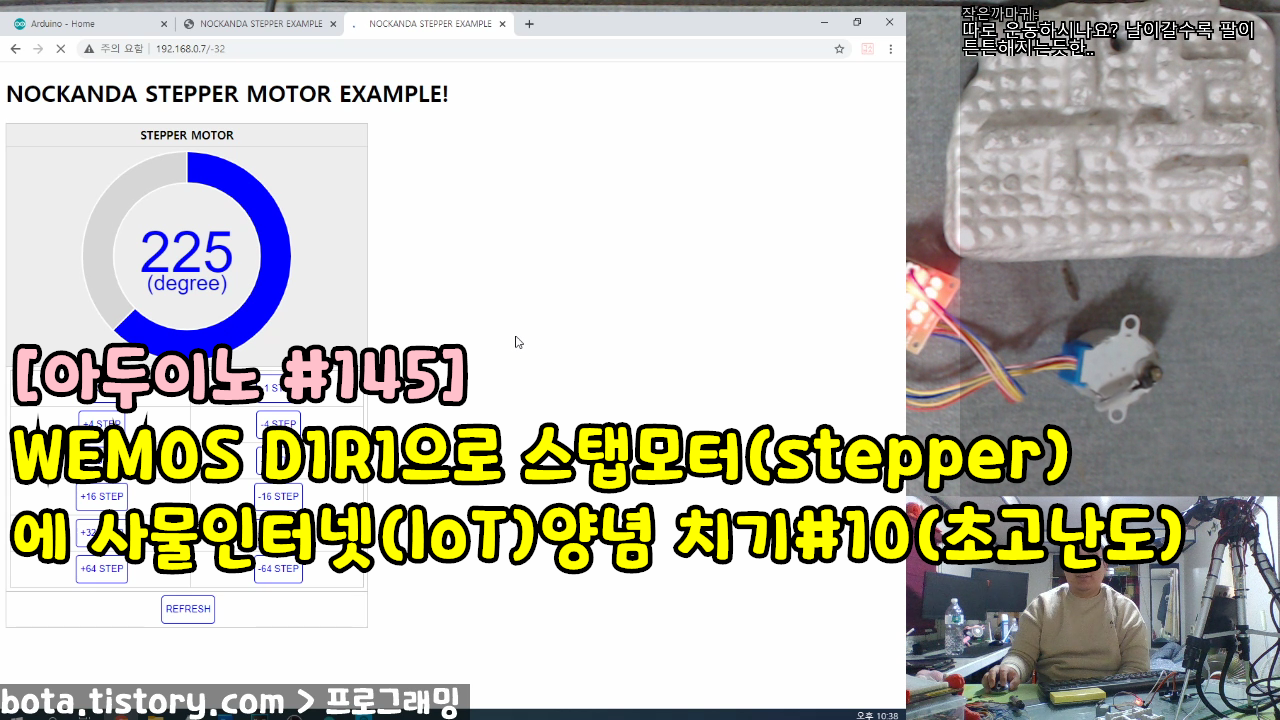 [아두이노#145] esp8266wifi 스탭모터(stepper) 제어해보기(wemos d1r1/사물인터넷(iot)시리즈#10/녹칸다/포로리야공대가자)