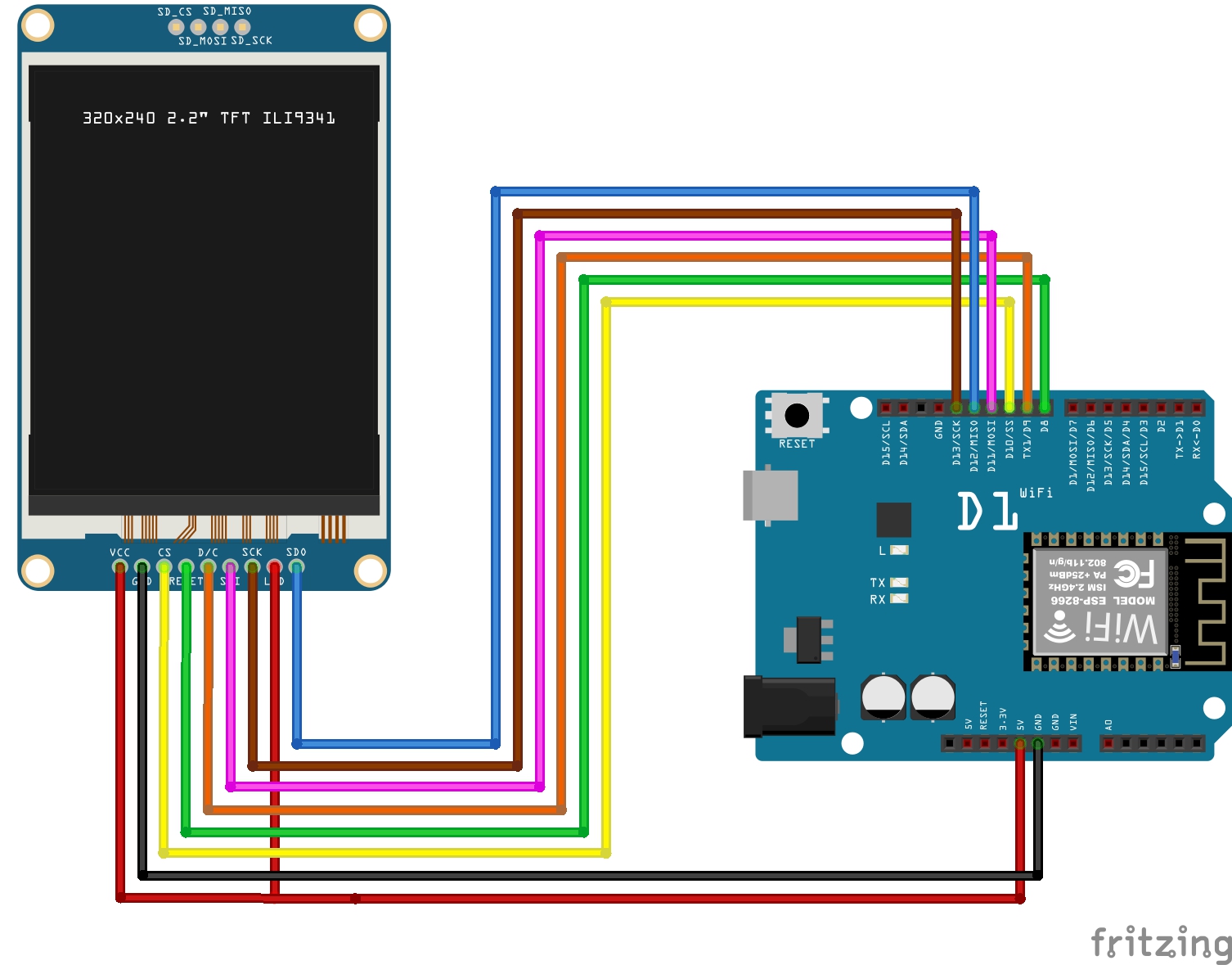 ILI9341 SPI 2.4~2.8인치 LCD 사물인터넷보드(wemos d1r1)에 사용해보기(튜토리얼)