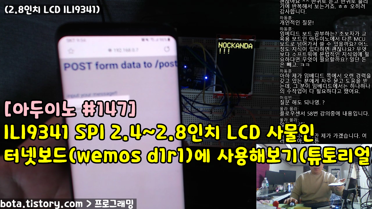 [아두이노#147] ILI9341 SPI 2.4~2.8인치 LCD 사물인터넷보드(wemos d1r1)에 사용해보기(튜토리얼)
