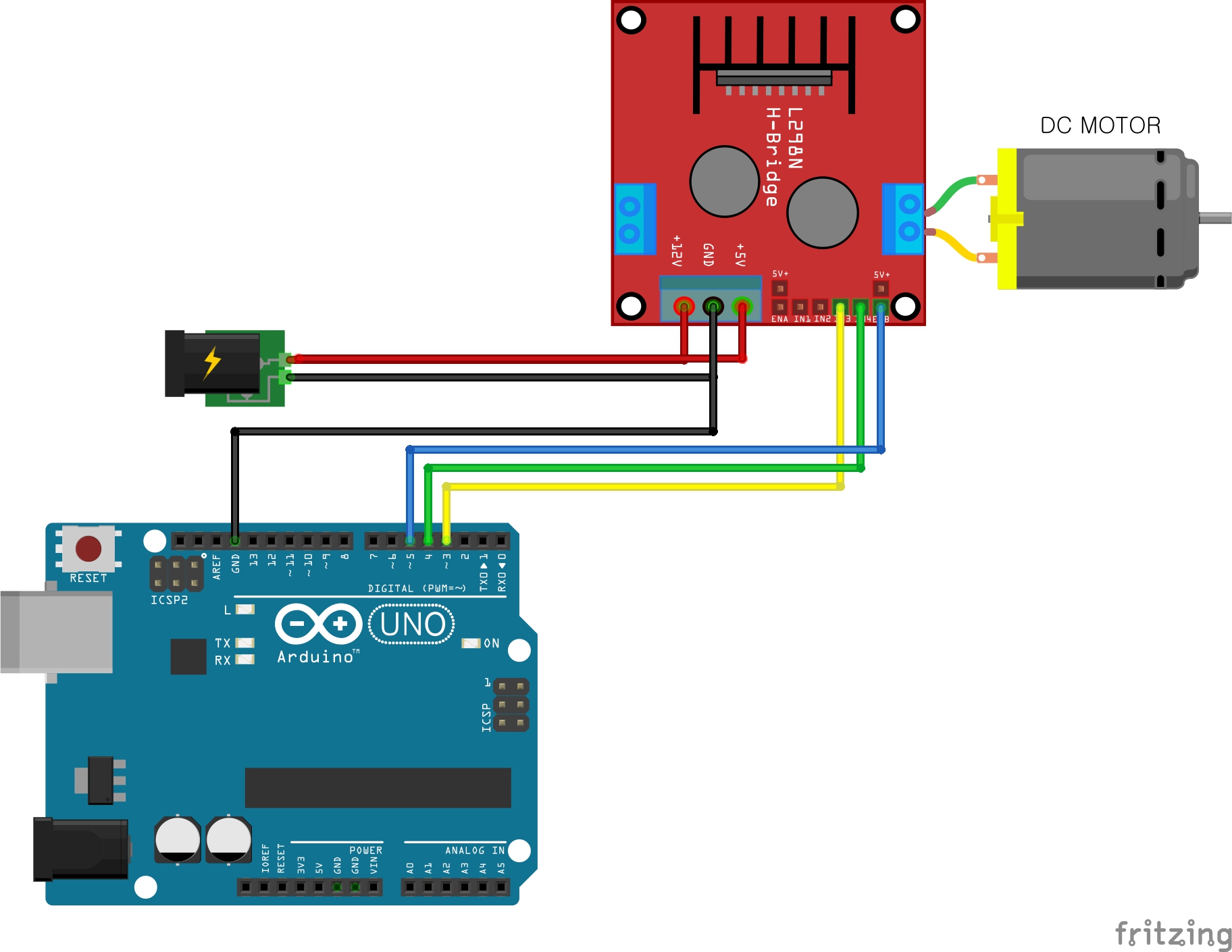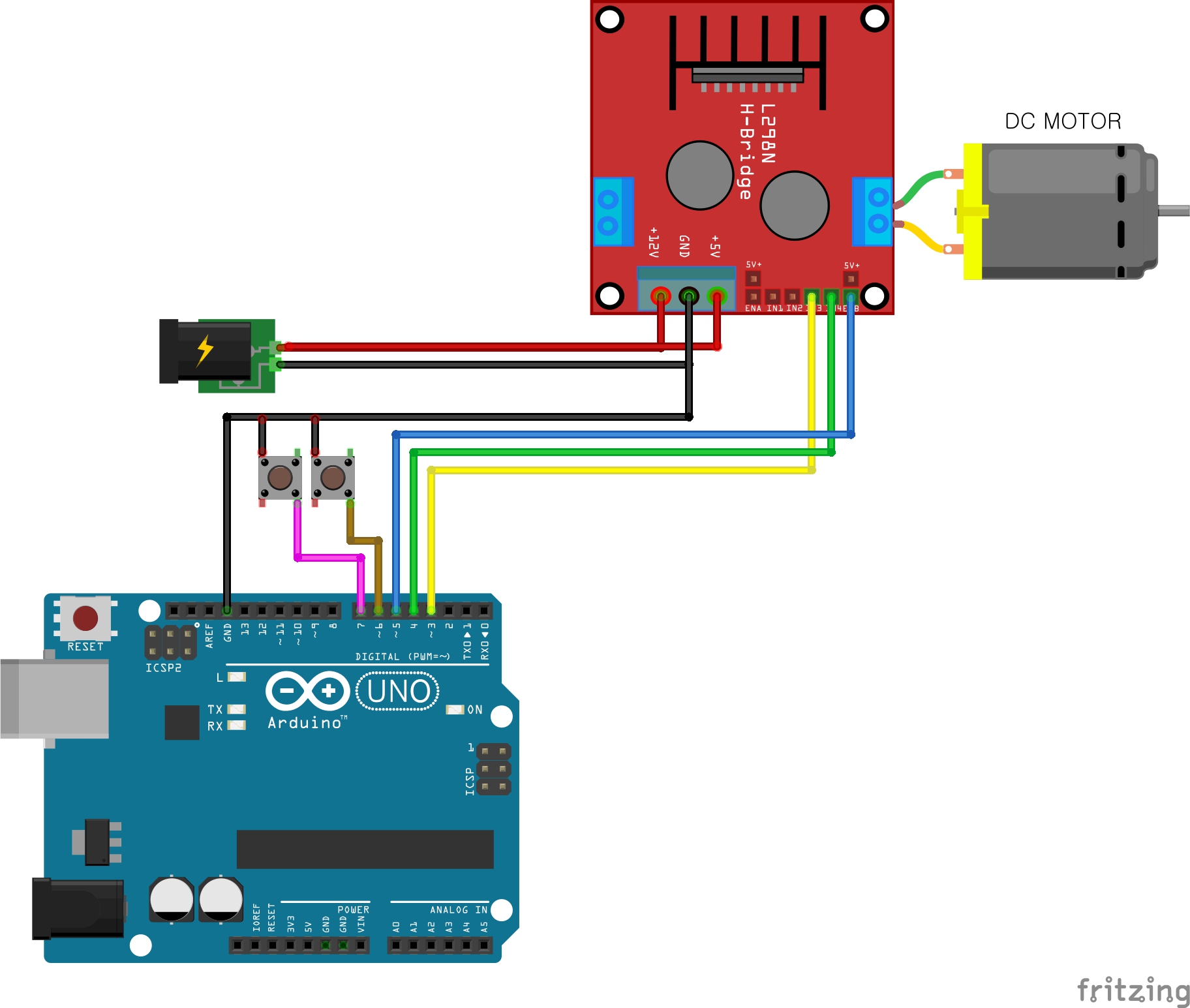 -DC모터 1개를 연결해서 작동하는 예제를 기본적인 것들을 이용해서 만들어보자!