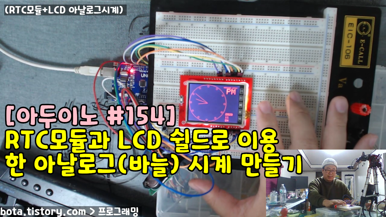 [아두이노#154] RTC모듈(DS1302)과 2.4인치 TFT LCD 쉴드(Spfd5408)를 이용한 아날로그(바늘) 시계 만들기(녹칸다/포로리야공대가자)
