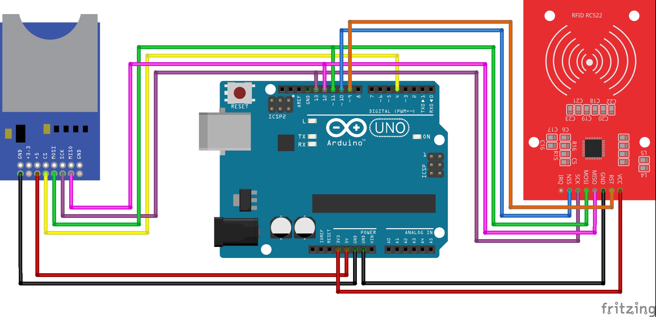 * 그런데 SD카드모듈도 SPI통신핀을 사용하므로 병렬로 연결한다!