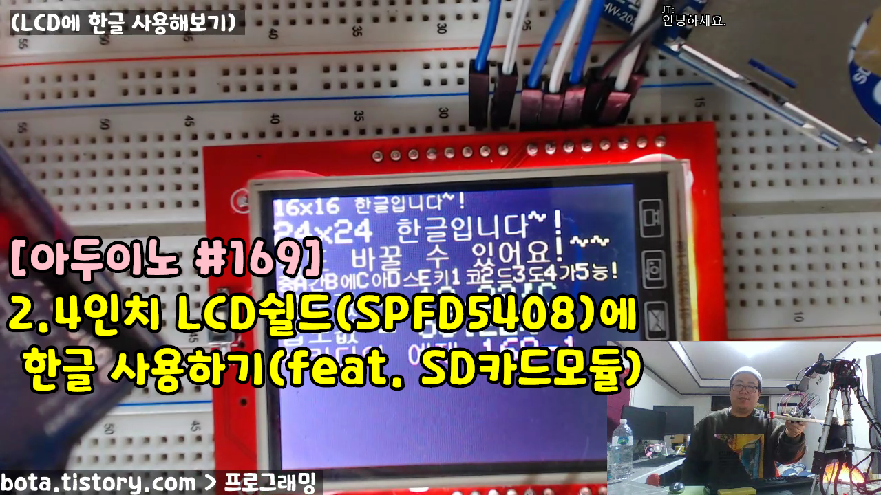 *169편 후반에 실패했던 사물인터넷 보드 wemos d1r1에서 lcd(ili9341)에 한글 띄우는 부분은 170편에서 간략하게 보충하며 마무리 하였습니다~~~!