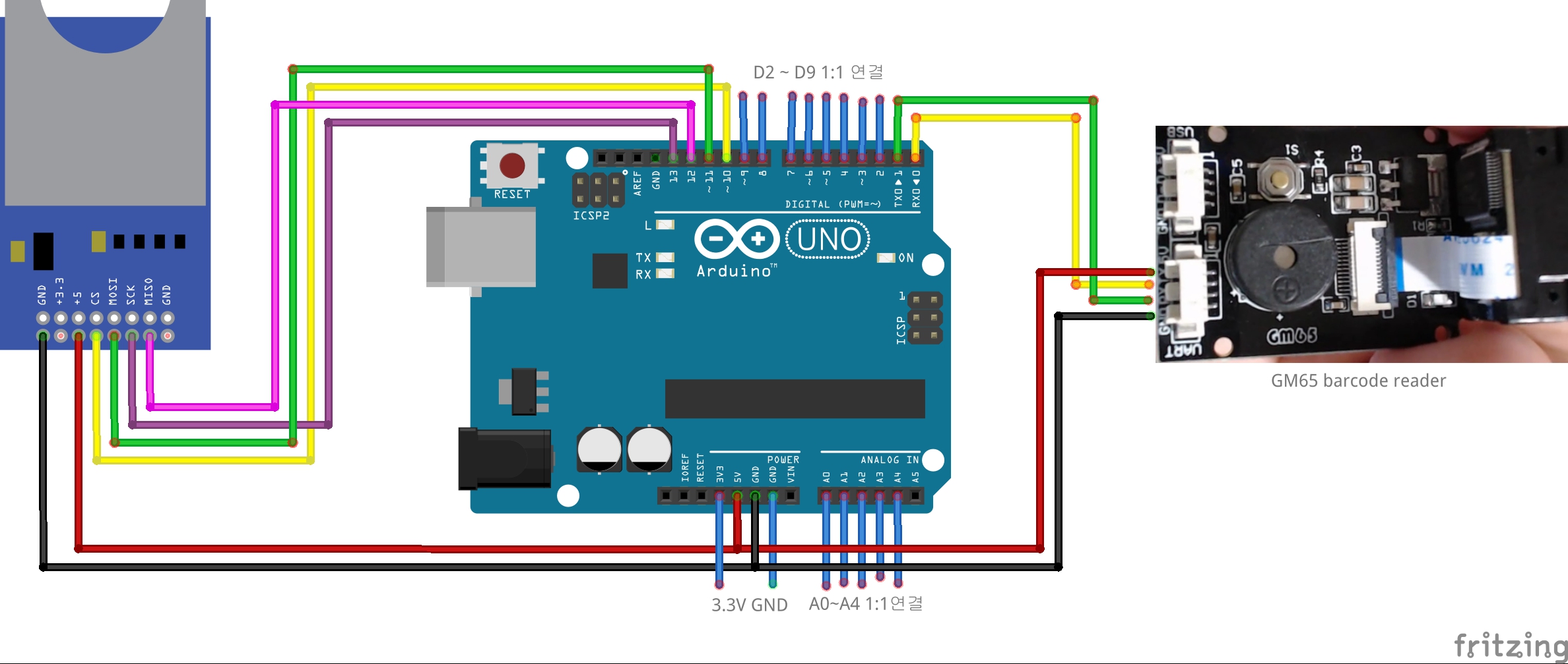 * 바코드리더(GM65)는 비어있는 핀이 없어서 TX핀을 D0에 RX핀을 D1에 연결했다!