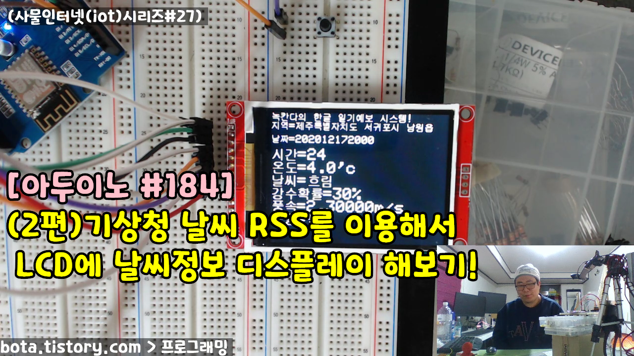 184-1 사물인터넷보드를 이용해서 기상청의 날씨 RSS정보를 LCD에 한글로 띄워보자!