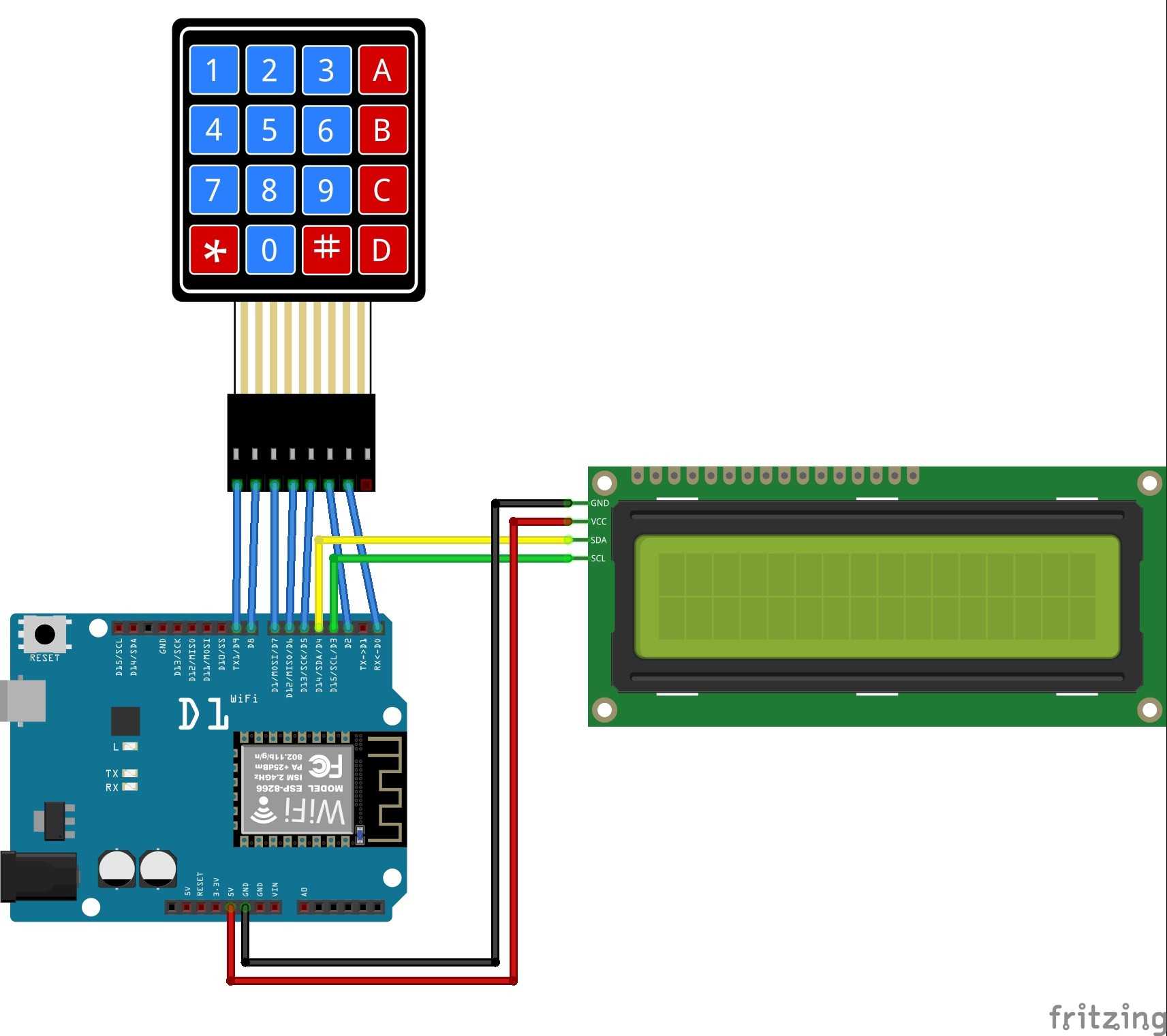 i2c통신을 사용하므로 sda핀을 D4에 연결하고 scl핀을 D3에 연결하라!