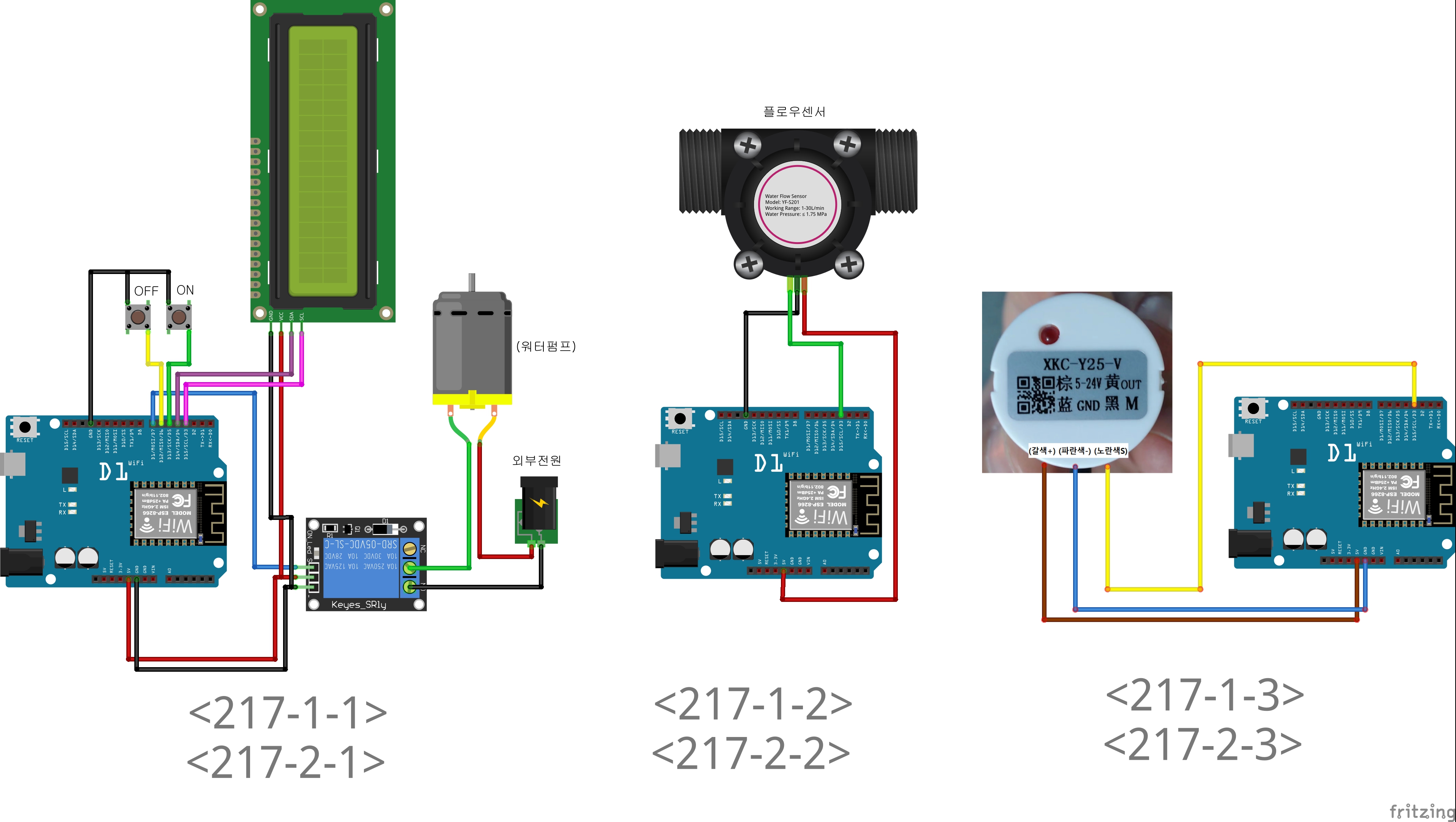 -워터펌프와 플로우센서, 수위센서가 각각 사물인터넷보드에 1개씩 달려서 유기적으로 작동될 수 있는지 확인해보자~~!
