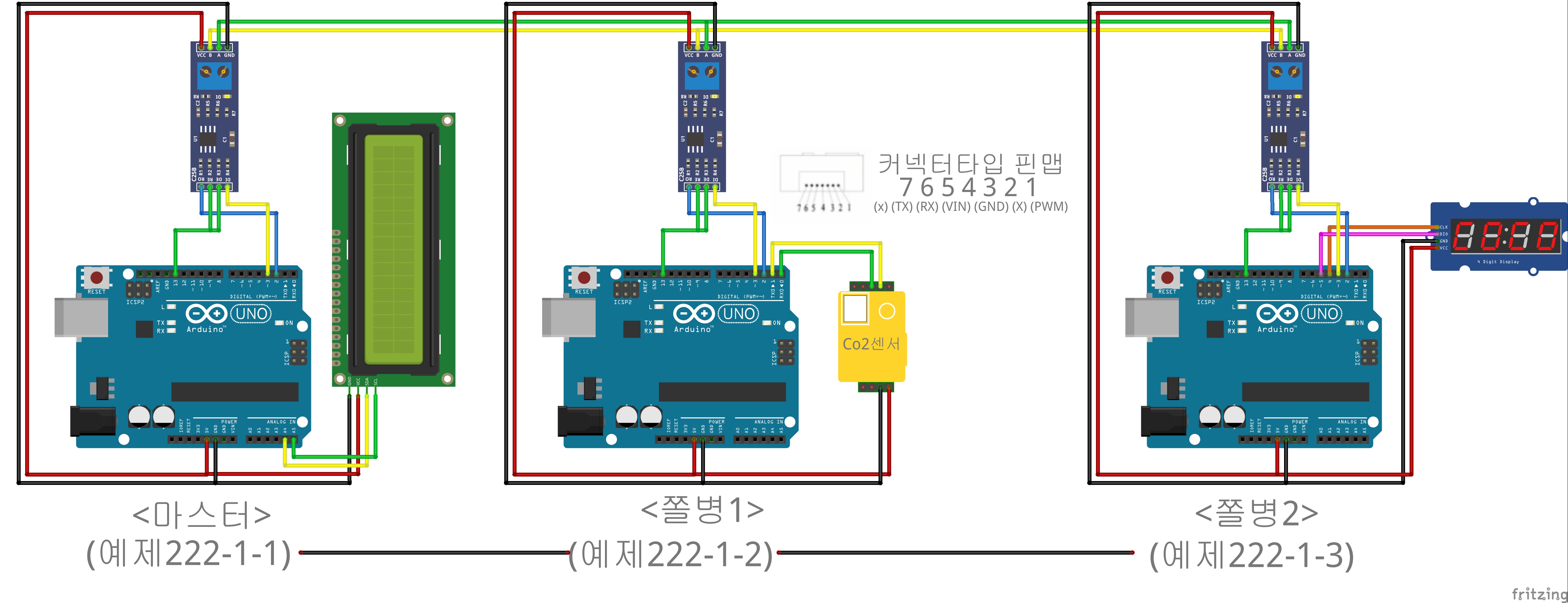 -(시나리오)A에서 B에게 센서데이터를 요청하고 값을 LCD에 띄운다! 그리고 A에서 C로 값을 전송해서 FND모듈에 결과를 출력해보자!