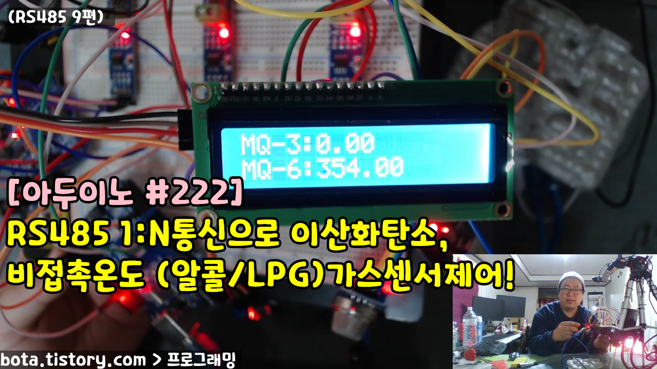 [아두이노#222] RS485/MAX485 통신모듈(9편) 1:N통신으로 이산화탄소(MH-Z19B) 비접촉온도(MLX90614) 가스센서(MQ3/MQ6) 제어해보기(녹칸다/포로리야공대가자)