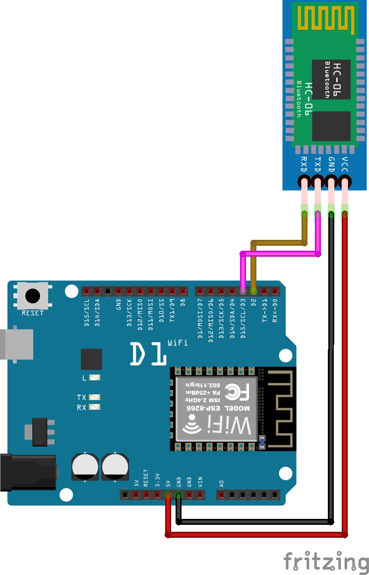 예제 228-1 사물인터넷보드(wemos d1r1)에 블루투스모듈(HC06)을 연결했다!