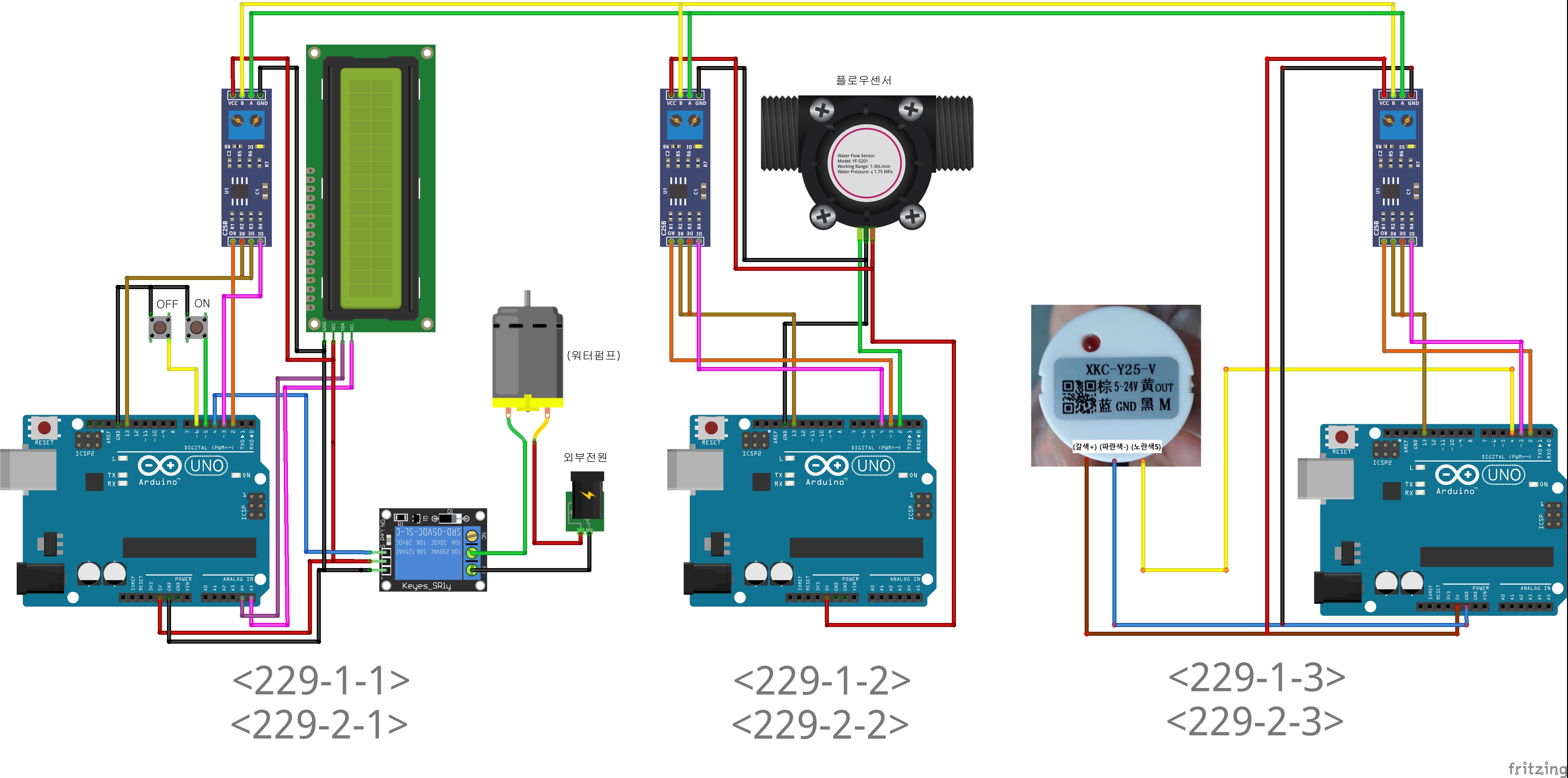 -B에는 워터플로우센서(YF-S401)를 연결해서 워터펌프가 작동할때 물의 토출량을 측정해서 A가 요청할때마다 값을 전송해보자!