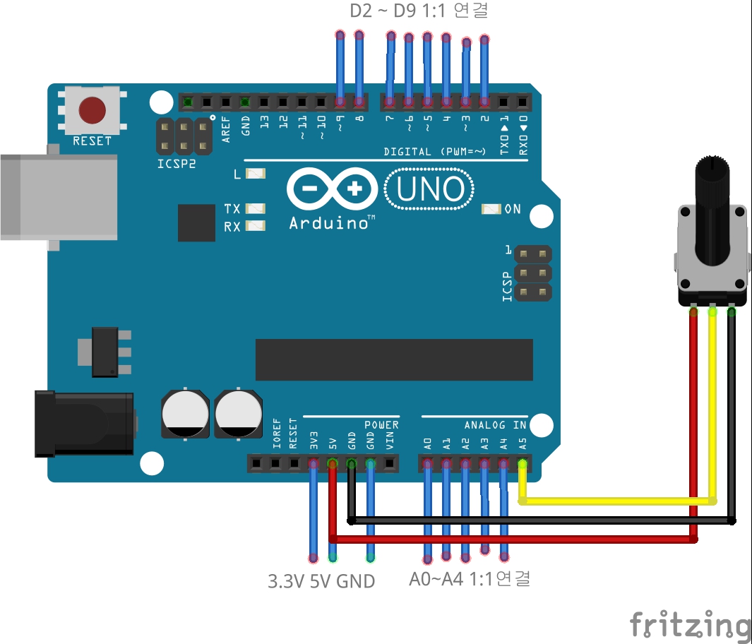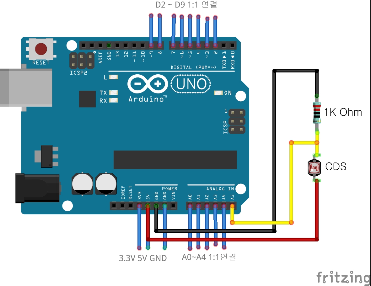 LCD모듈(SPFD5408)에 가변저항과 광센서(CDS)로 꺾은선 그래프 그려보기!