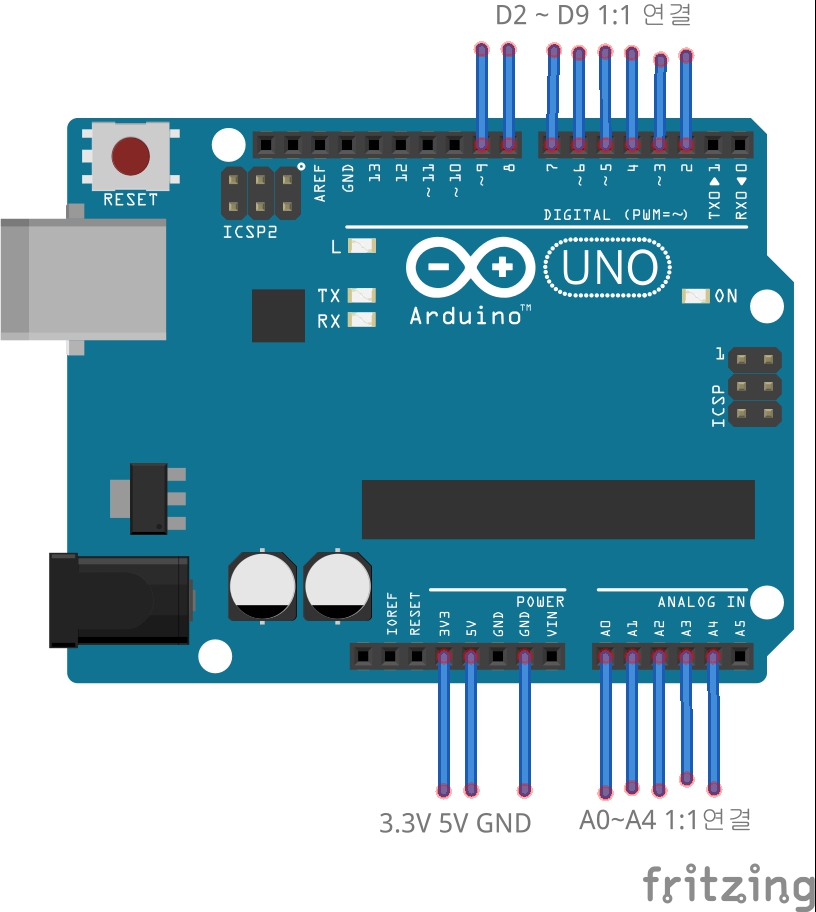 -아두이노 우노에 SPFD5408을 연결하면 사용가능한 디지털핀이 부족하다!