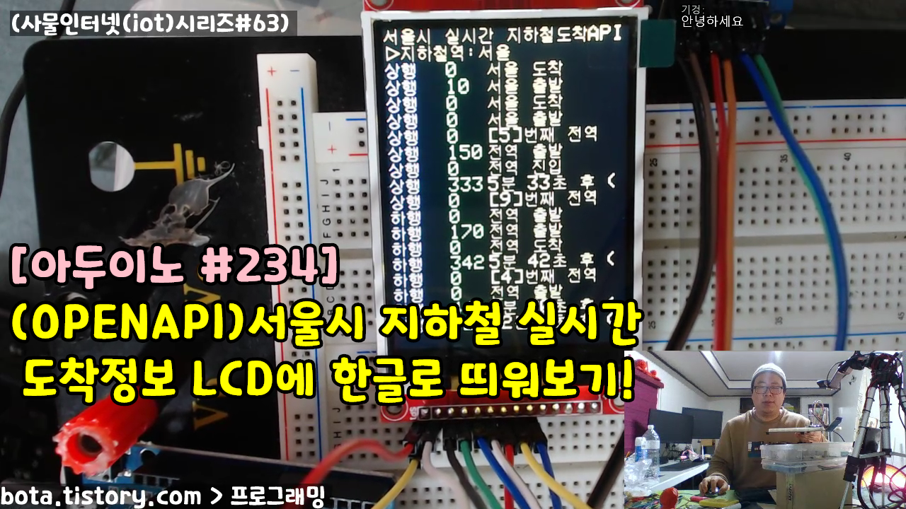 [아두이노#234] esp8266wifi (OPENAPI)서울시 지하철 실시간 도착정보 LCD에 한글로 띄워보기!(wemos d1r1/사물인터넷(iot)시리즈#63/녹칸다/포로리야공대가자)