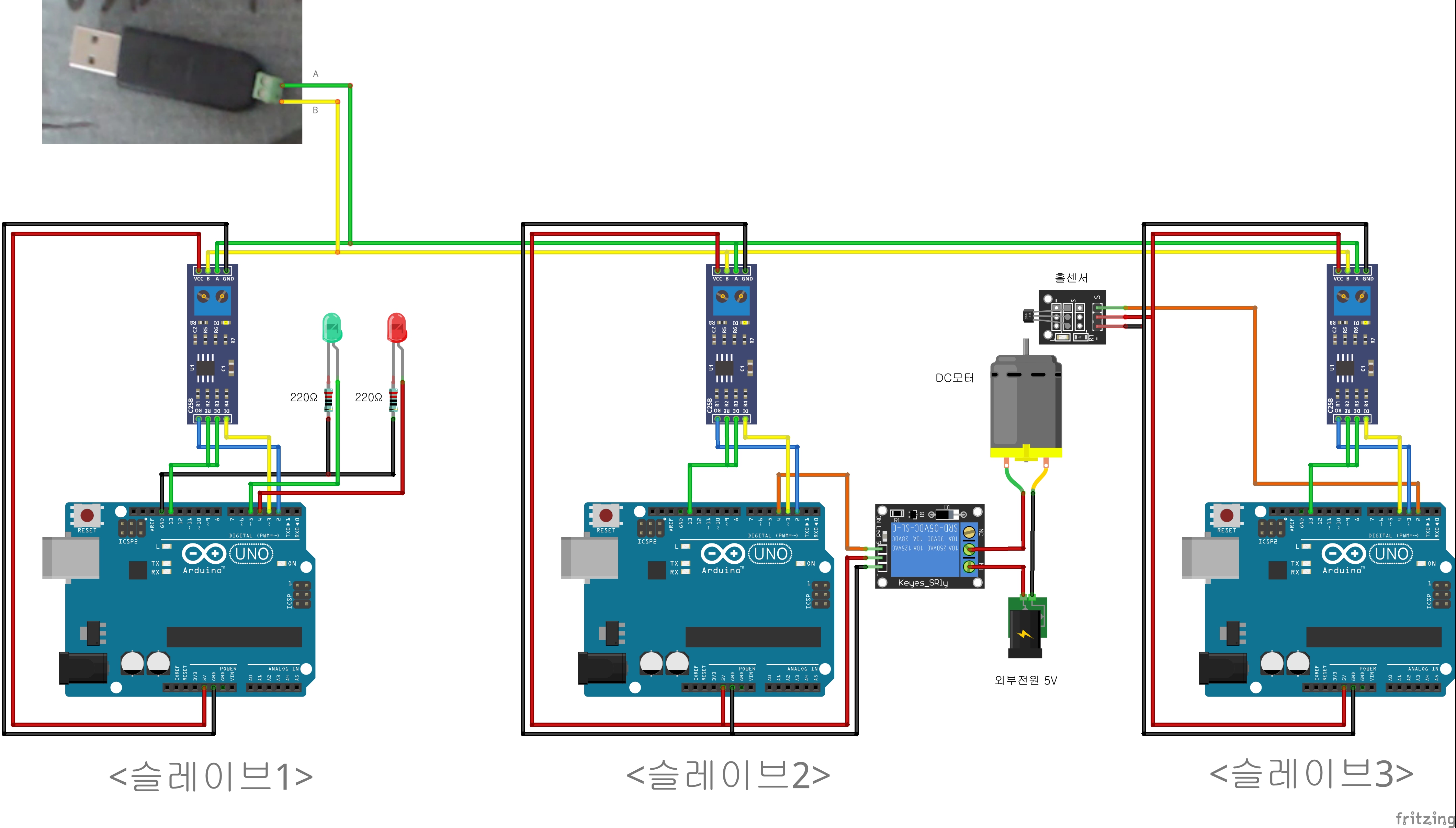 -PC에 모듈을 연결하고 아두이노 3대를 준비해서 각각 RS485모듈을 하나씩 달아준다!