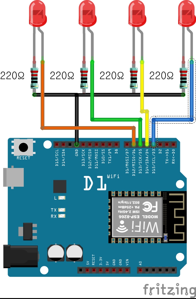 -다음 외장 LED 4개를 준비해서 사물인터넷보드에 연결하고 C#윈폼으로 개별 제어를 해보자!