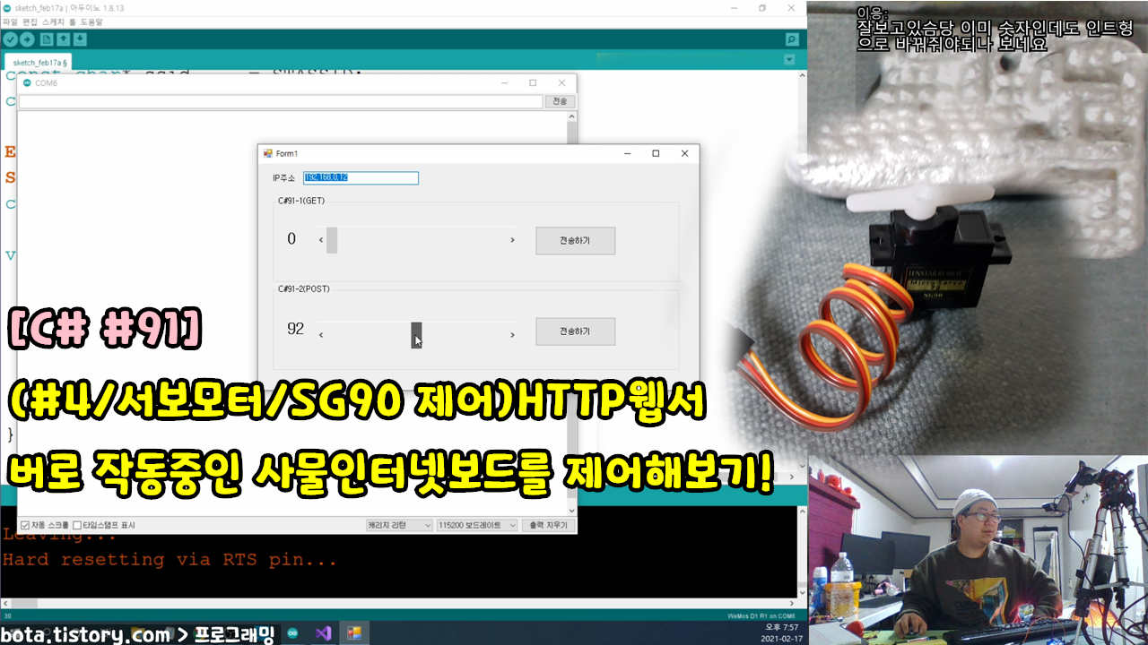[C#윈폼91] (#4서보모터/SG90 제어)HTTP웹서버로 작동중인 사물인터넷보드(WEMOS D1R1)를 GET/POST방식으로 제어해보기!(녹칸다/포로리야공대가자)