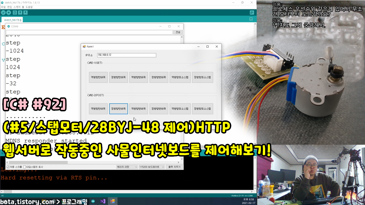 [C#윈폼92] (#5스탭모터/28BYJ-48 제어)HTTP웹서버로 작동중인 사물인터넷보드(WEMOS D1R1)를 GET/POST방식으로 제어해보기!(녹칸다/포로리야공대가자)