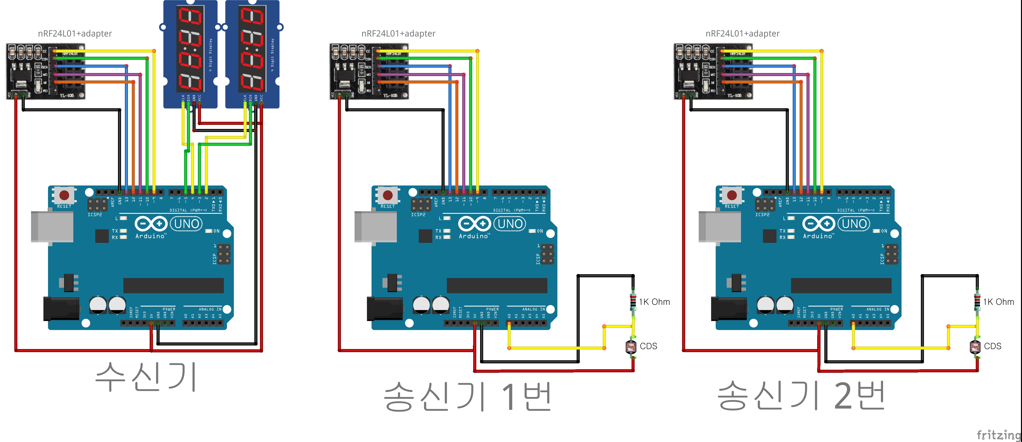 (#2/광센서/가변저항) nRF24L01을 이용한 1:2 단방향 무선통신 원격제어 시리즈!(녹칸다/포로리야공대가자)