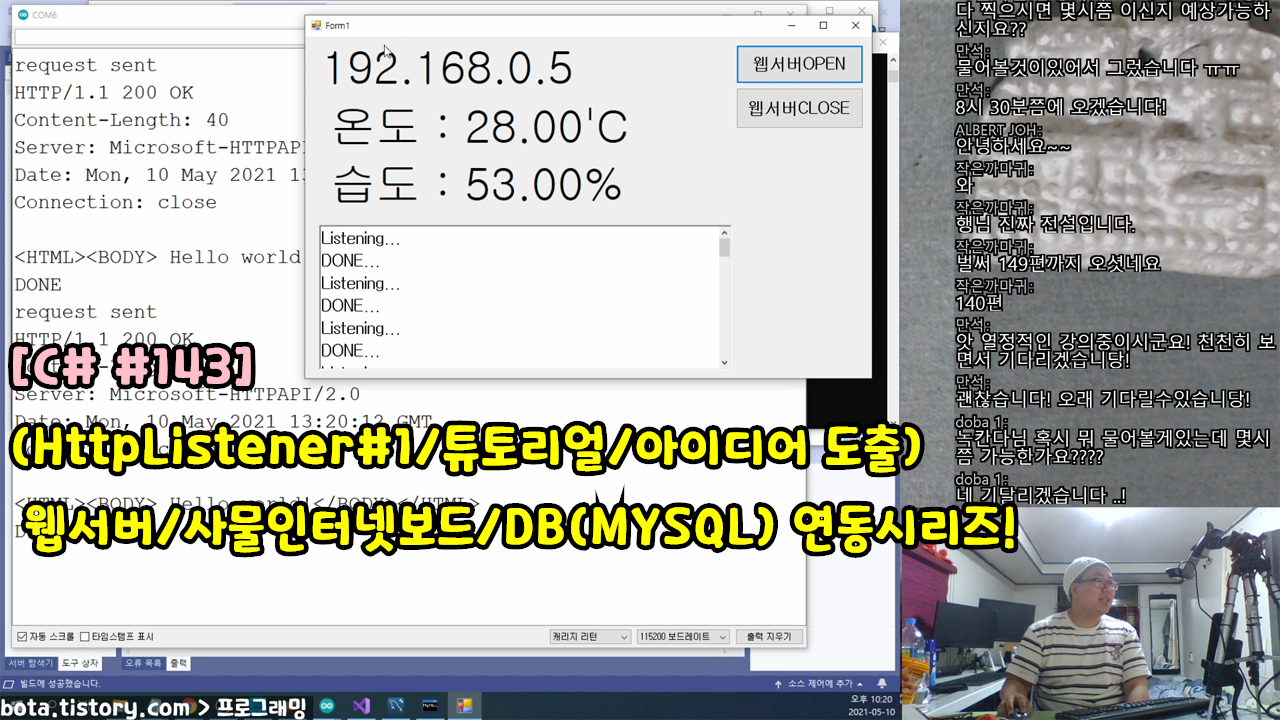 [C#윈폼143] (HttpListener#1/튜토리얼/아이디어 도출) 웹서버와 사물인터넷(IoT) 보드(ESP8266) 데이터베이스(MYSQL) 연동시리즈!(녹칸다/포로리야공대가자)