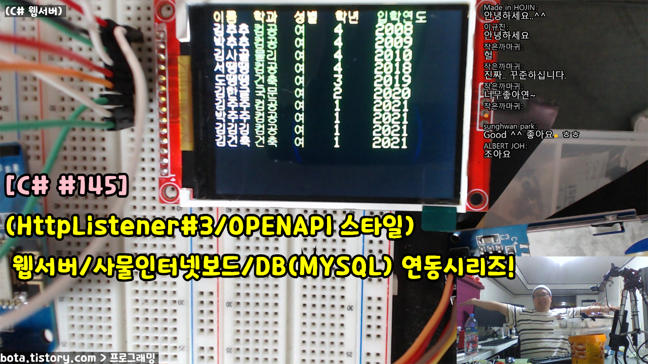 [C#윈폼145] (HttpListener#3/OPENAPI 스타일) 웹서버와 사물인터넷(IoT) 보드(ESP8266) 데이터베이스(MYSQL) 연동시리즈!(녹칸다/포로리야공대가자)