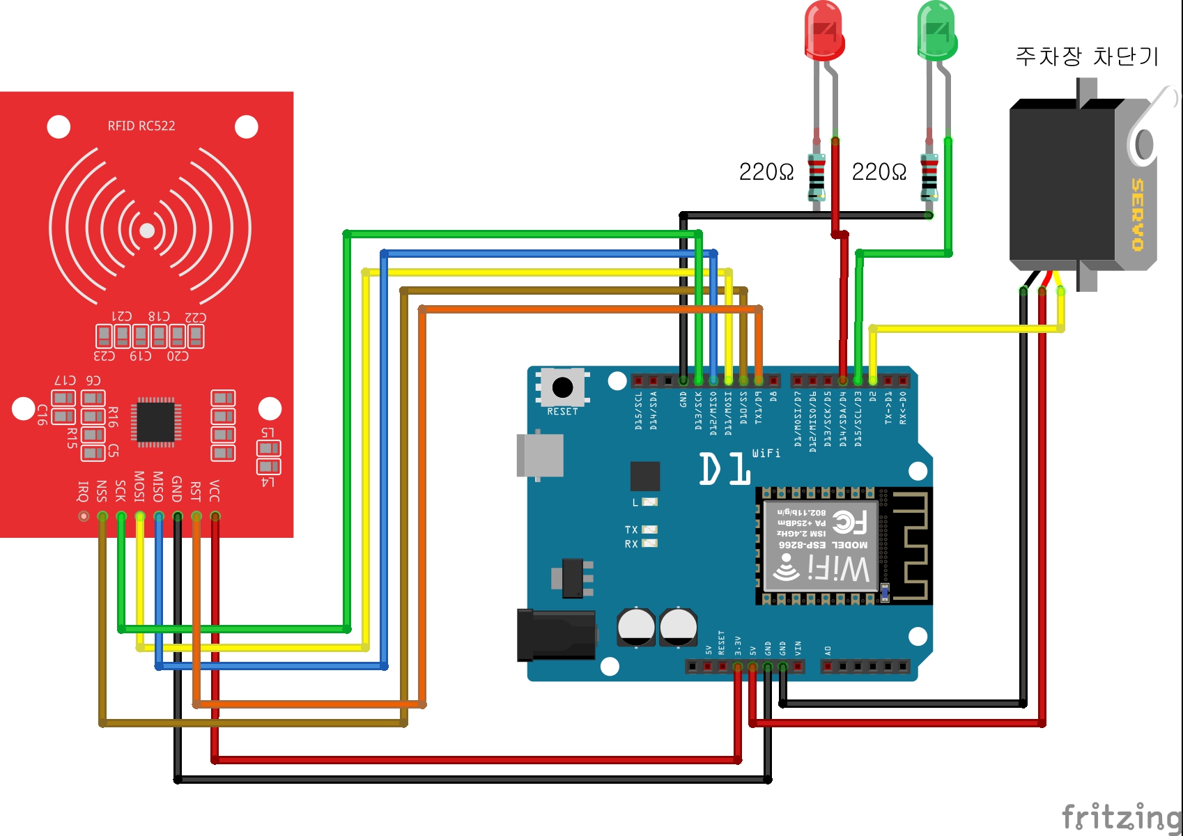 -6편에서는 RFID리더(RC522)와 RFID태그를 이용하고 웹서버의 DB를 이용해서 간단한 주차장 차단기를 구현 해보는 컨셉이다!