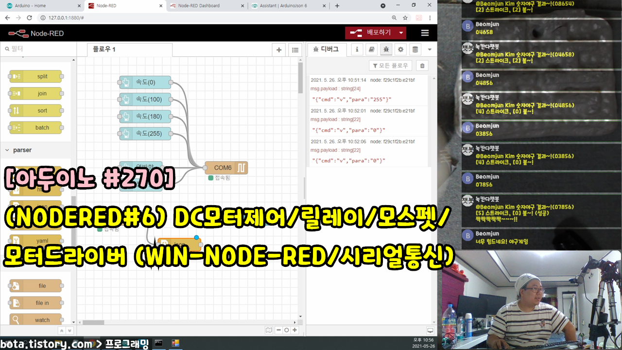 [아두이노#270] (NODERED#6) DC모터제어/릴레이/모스펫(IRF520)/모터드라이버(L298N) (WIN-NODE-RED 아두이노 시리얼통신 시리즈/녹칸다/포로리야공대가자)