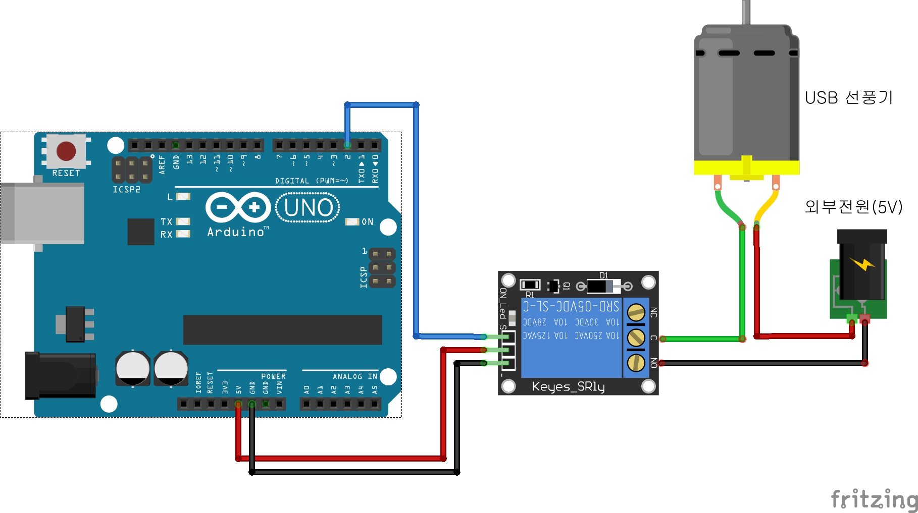 1. DC모터와 릴레이를 아두이노에 연결하고 NODERED에서 버튼을 이용해서 DC모터를 ON/OFF한다!