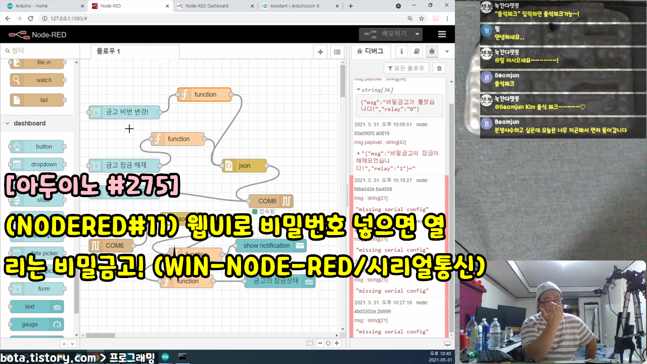 [아두이노#275] (NODERED#11) 웹UI로 비밀번호 넣으면 열리는 비밀금고! (아두이노와 시리얼통신을 이용한 시리즈/녹칸다/포로리야공대가자)