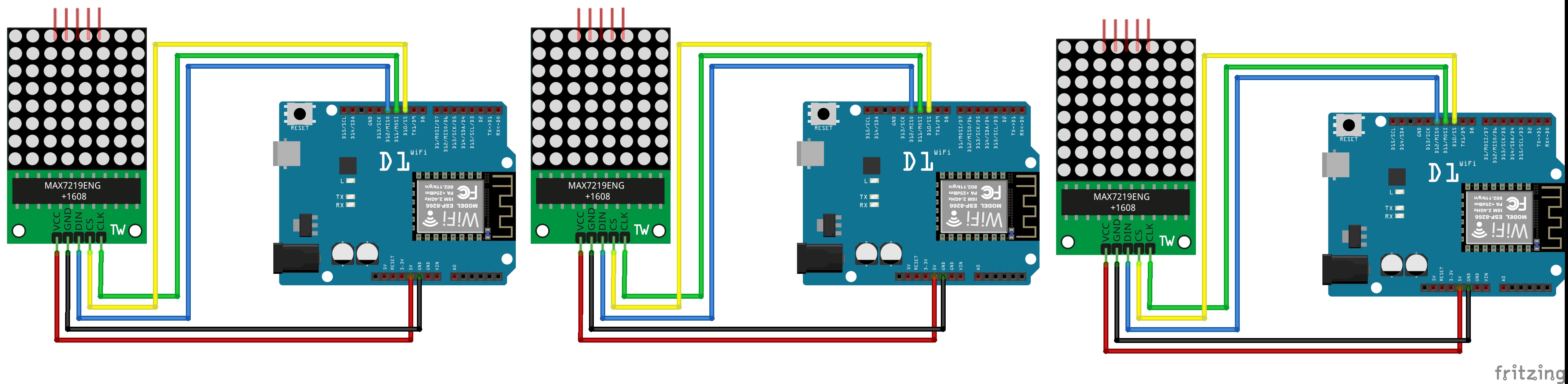 -4.사물인터넷보드 3개에 32*8도트매트릭스(MAX7219) 3개를 각각 연결해서 node-red에서 화면에 값을 출력한다!