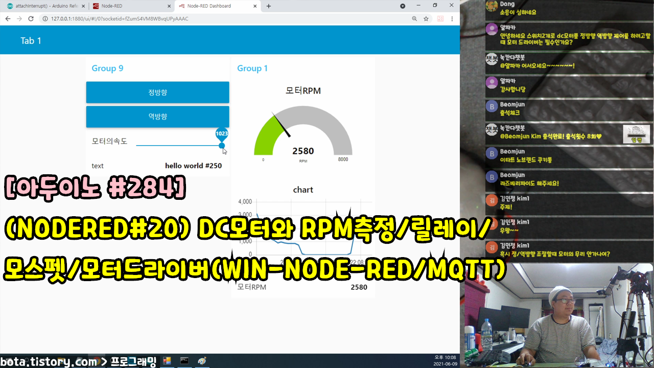 [아두이노#284] (NODERED#20) DC모터와 RPM측정/릴레이/모스펫(IRF520)/모터드라이버(L298N) (사물인터넷IoT와 MQTT를 이용한 시리즈/녹칸다/포로리야공대가자)