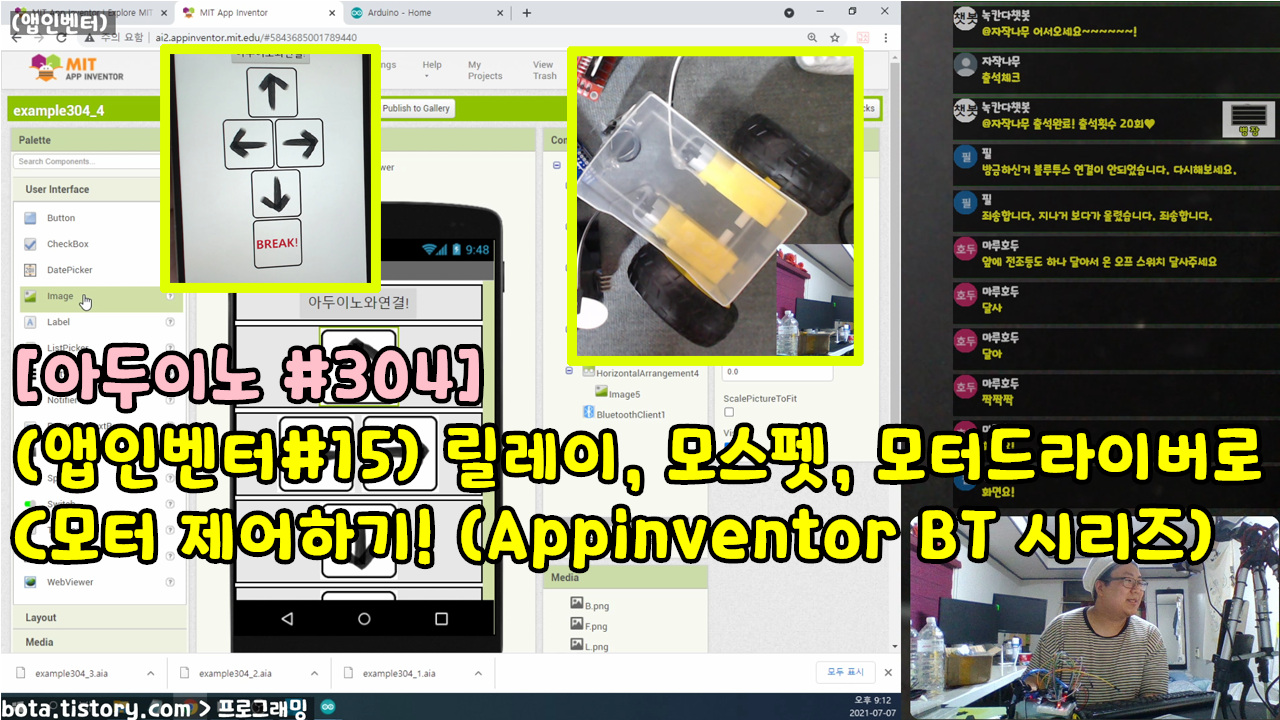 [아두이노#304] (앱인벤터#15) 릴레이, 모스펫(IRF520), 모터드라이버(L298N)로 DC모터 제어하기! (Appinventor BT 시리즈/녹칸다/포로리야공대가자)