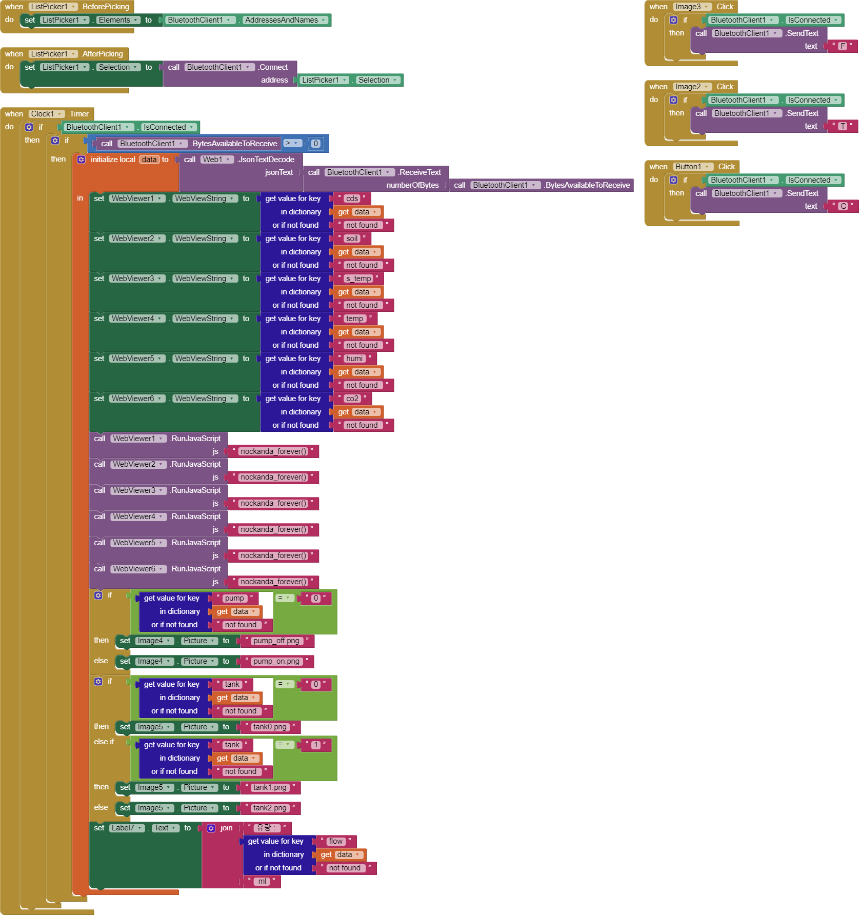 -앱인벤터에서 아두이노쪽으로 제어되는 명령은 워터펌프 제어 명령 뿐이므로 심플하게 구성할 수 있을 듯 하다!