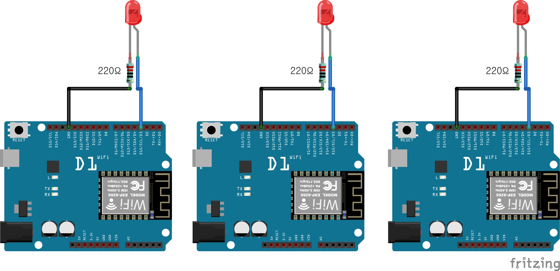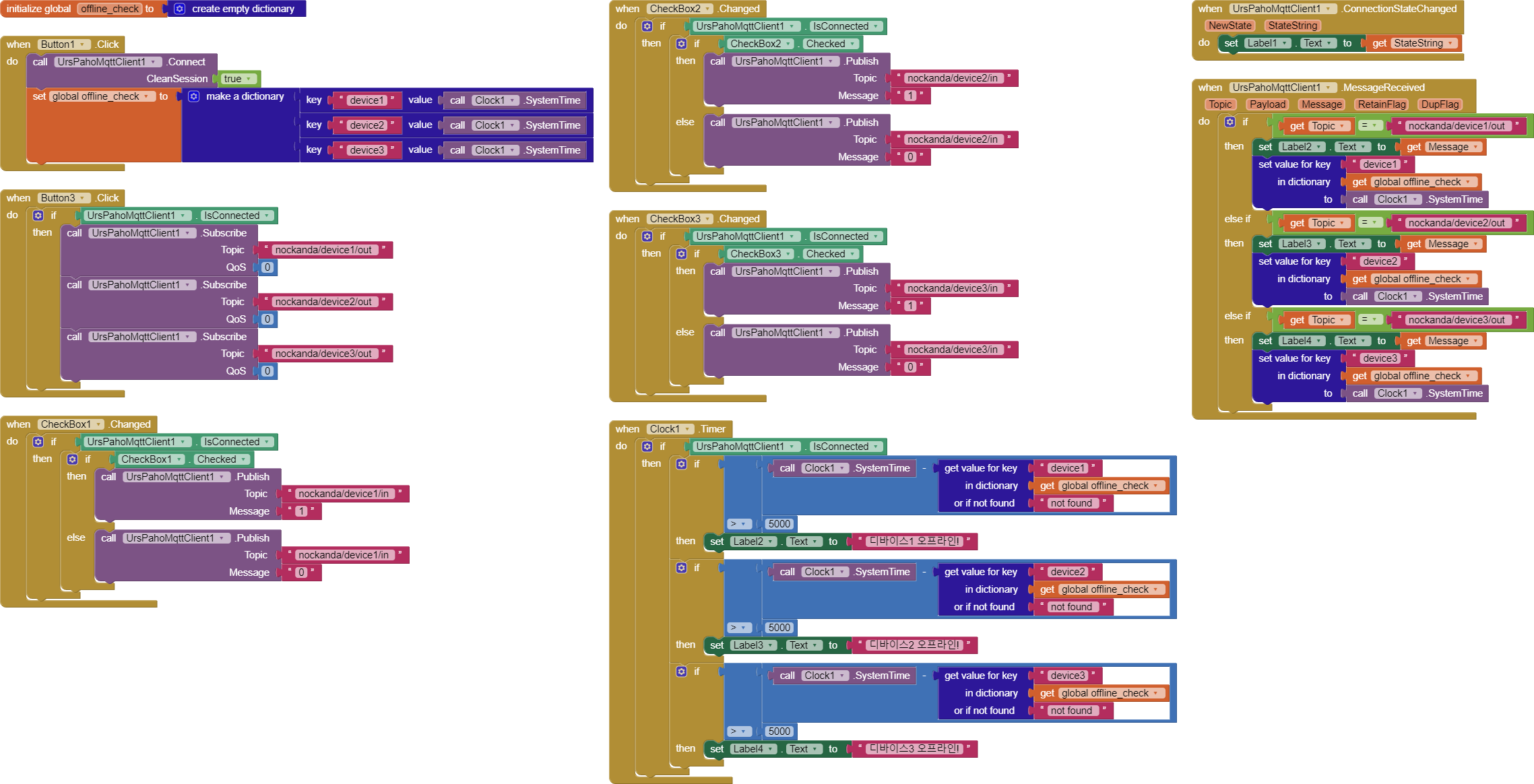8.사물인터넷보드가 3개가 되었을때 각각 LED가 1개씩 달려있다! 앱인벤터의 MQTT로 LED를 ON/OFF시키시오!