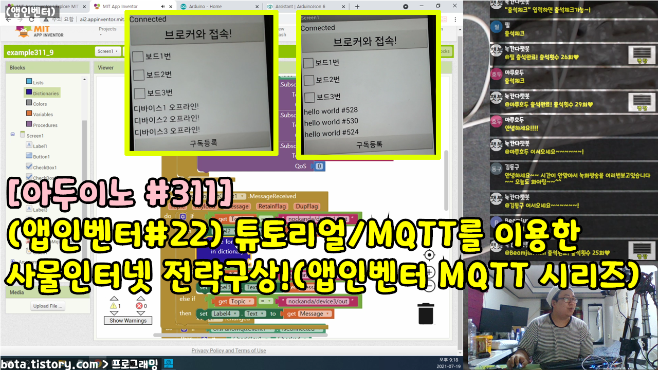 [아두이노#311] (앱인벤터#22) 튜토리얼/MQTT를 이용한 사물인터넷(IoT) 전략구상!(Appinventor MQTT 시리즈/녹칸다/포로리야공대가자)
