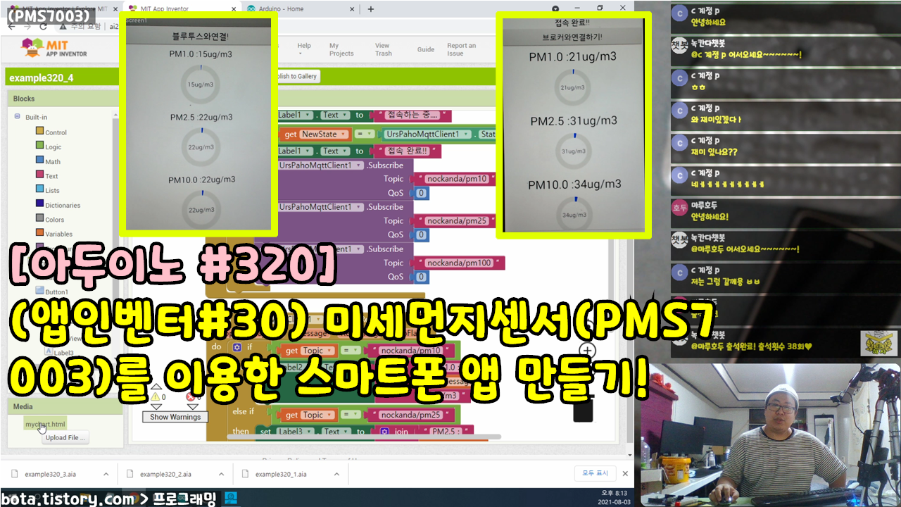 (앱인벤터#30) 미세먼지센서(PMS7003)를 이용한 스마트폰 앱 만들기!(녹칸다/포로리야공대가자)