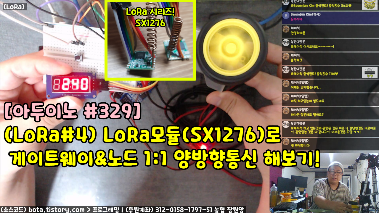 [아두이노#329] (LoRa#4)장거리 무선통신 LoRa모듈(SX1276)로 게이트웨이(gateway)&노드(node) 1:1 양방향통신 해보기!(녹칸다/포로리야공대가자)