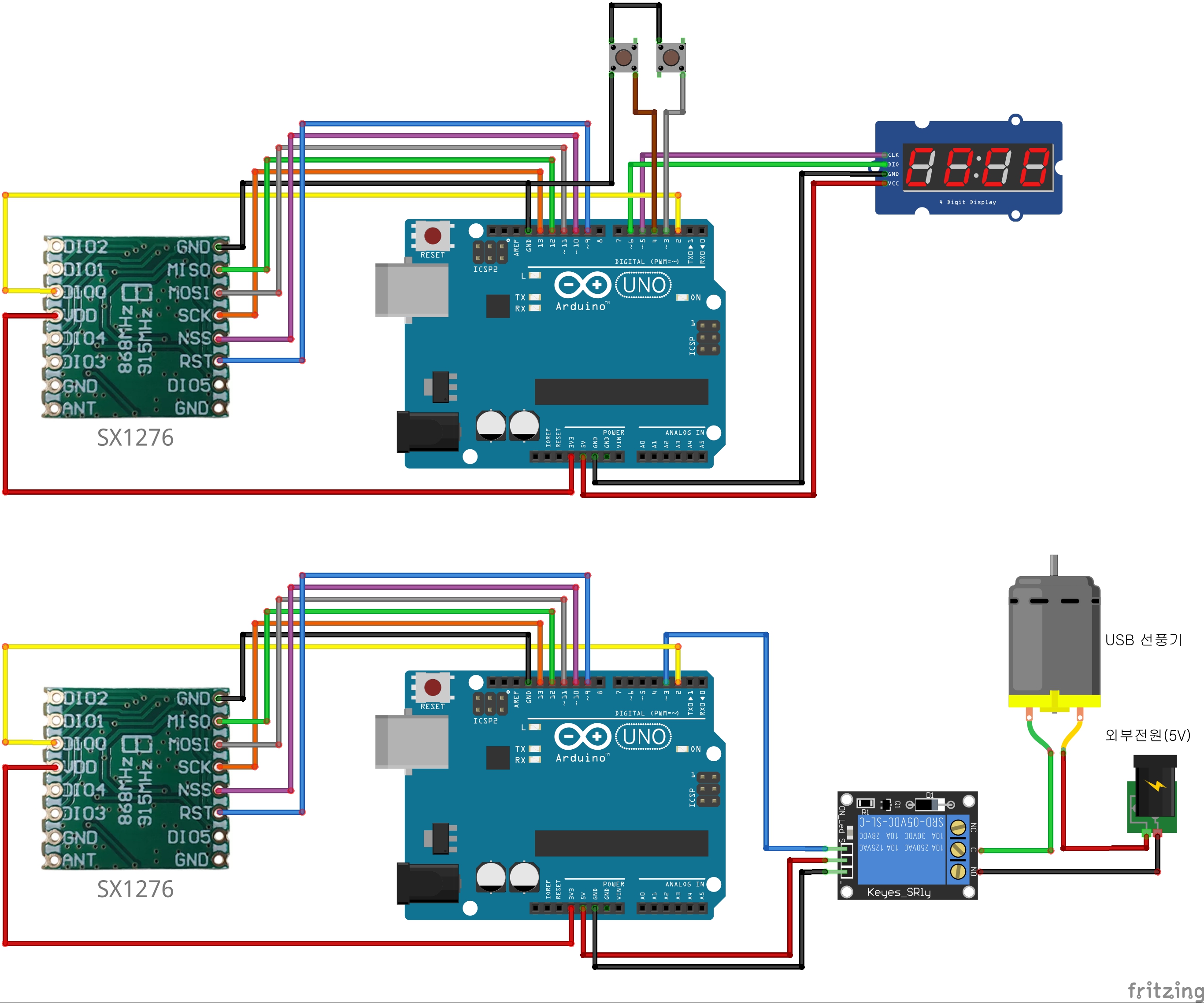 녹칸다의 아두이노 예제에서 LoRa모듈을 활용하는 시리즈중 1:1 단방향에 대한 내용이다!