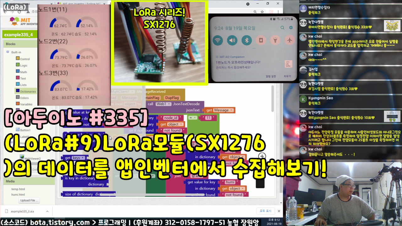 [아두이노#335] (LoRa#9)LoRa모듈(SX1276)의 데이터를 앱인벤터에서 수집해보기!(Bluetooth, MQTT, JSON)(녹칸다/포로리야공대가자)