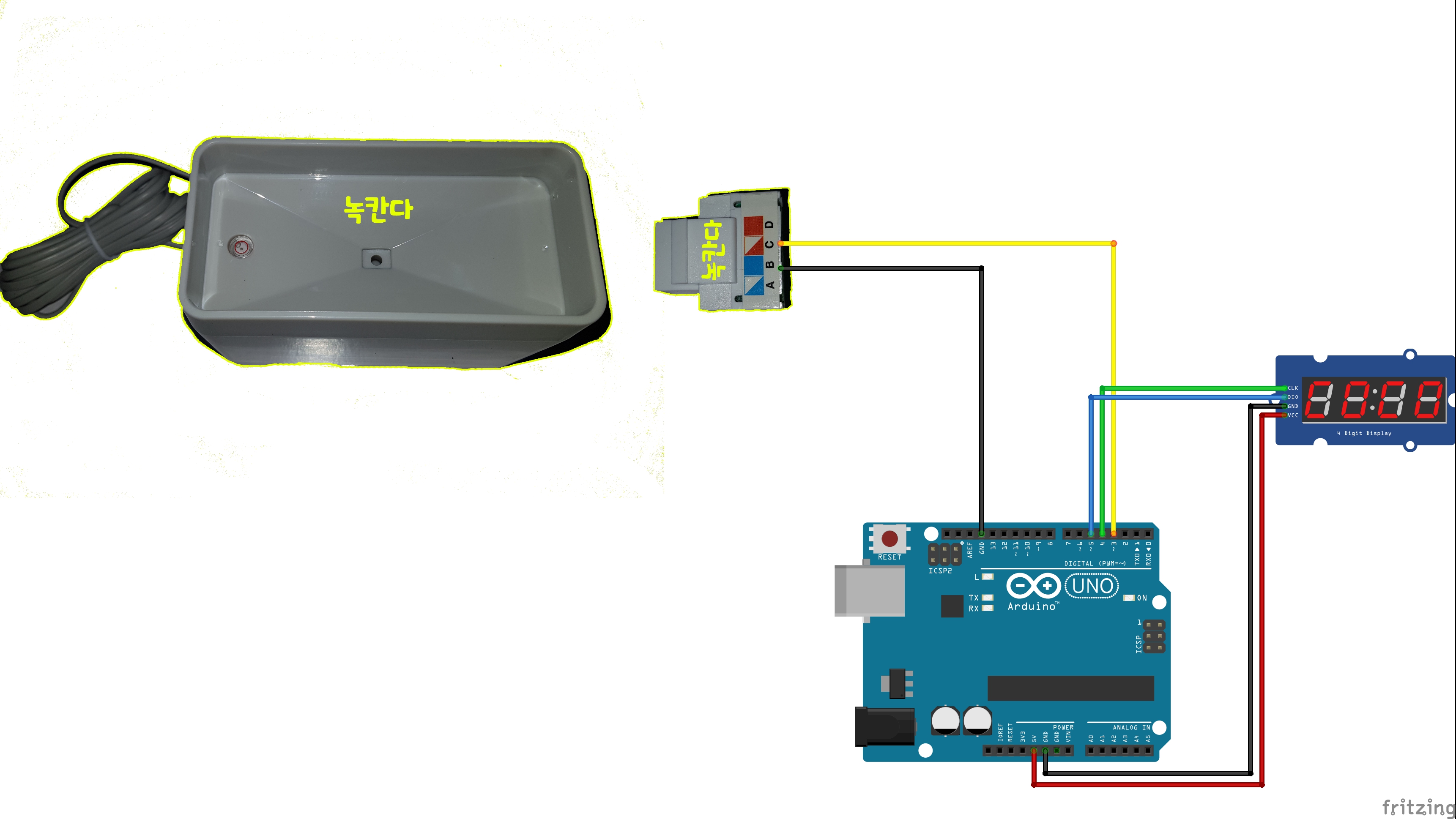5.(3)예제에서 측정된 결과를 FND모듈(TM1637)에 출력하라!