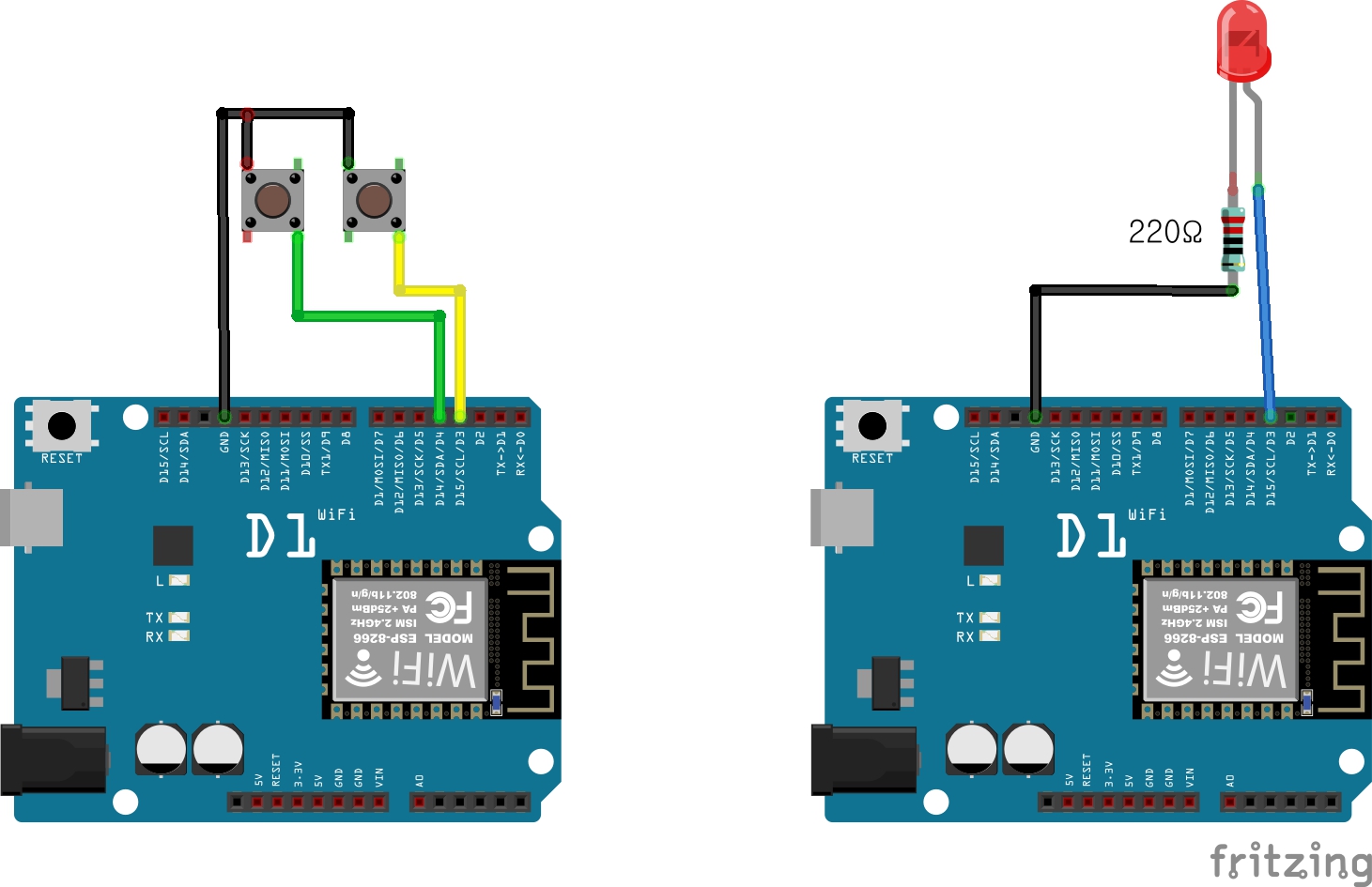 이번편은 9편에서 구현한 노드레드(node-red)서버를 이용해서 사물인터넷보드(wemos d1r1) 2대의 보드간 제어를 목적으로 한다!