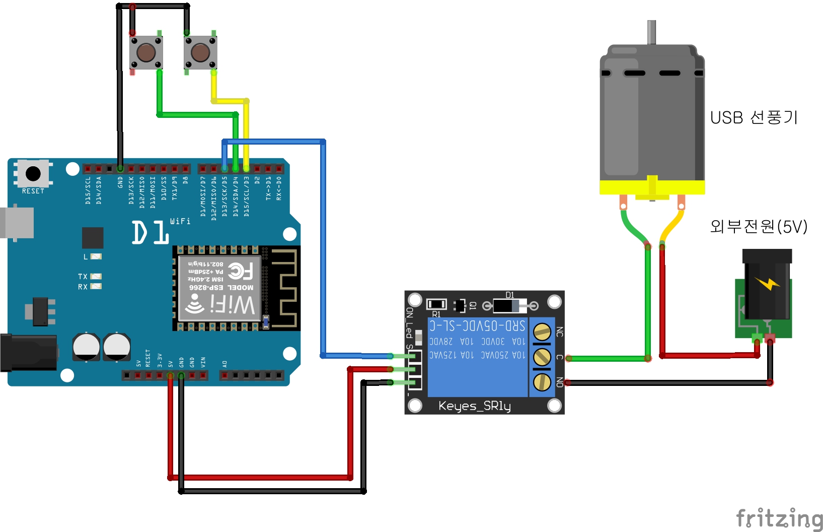 4.IoT보드 1대에 릴레이와 버튼2개를 연결하고 C#클라이언트와 양방향 통신으로 제어하는 예제!