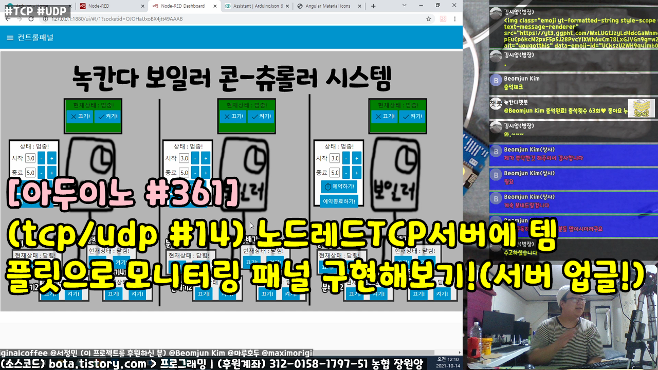 [아두이노#361] (tcp/udp #14) 노드레드(node-red) TCP서버에 템플릿(ui-template)으로 모니터링 패널 구현해보기!(서버 업글/녹칸다/포로리야공대가자)