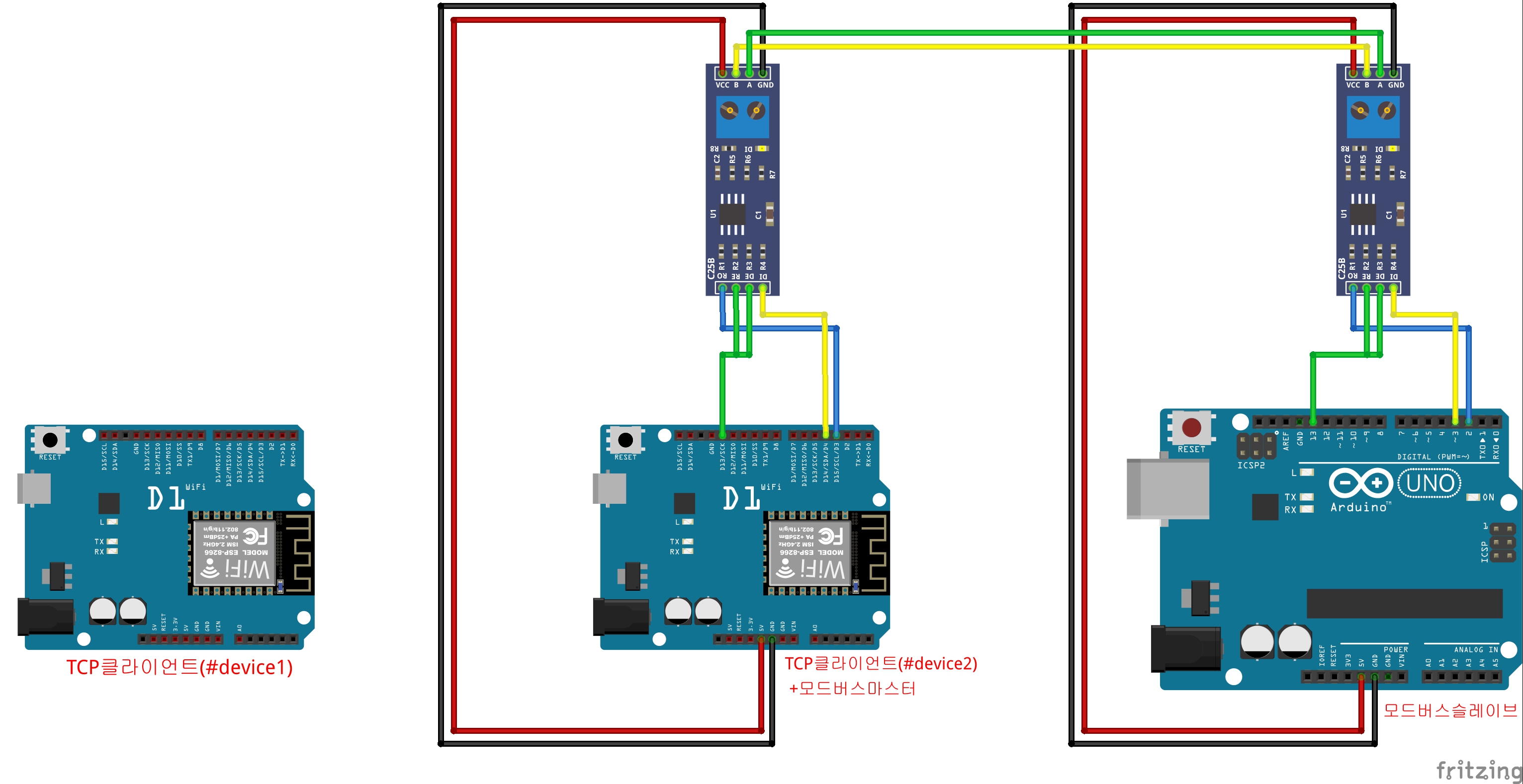 (A클라이언트) - (서버) - (모드버스마스터) - (모드버스슬레이브) - (모드버스마스터) - (서버) - (A클라이언트)